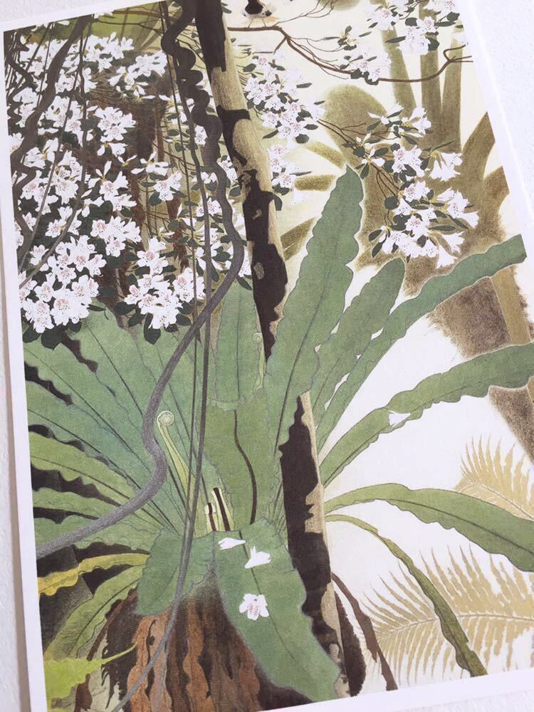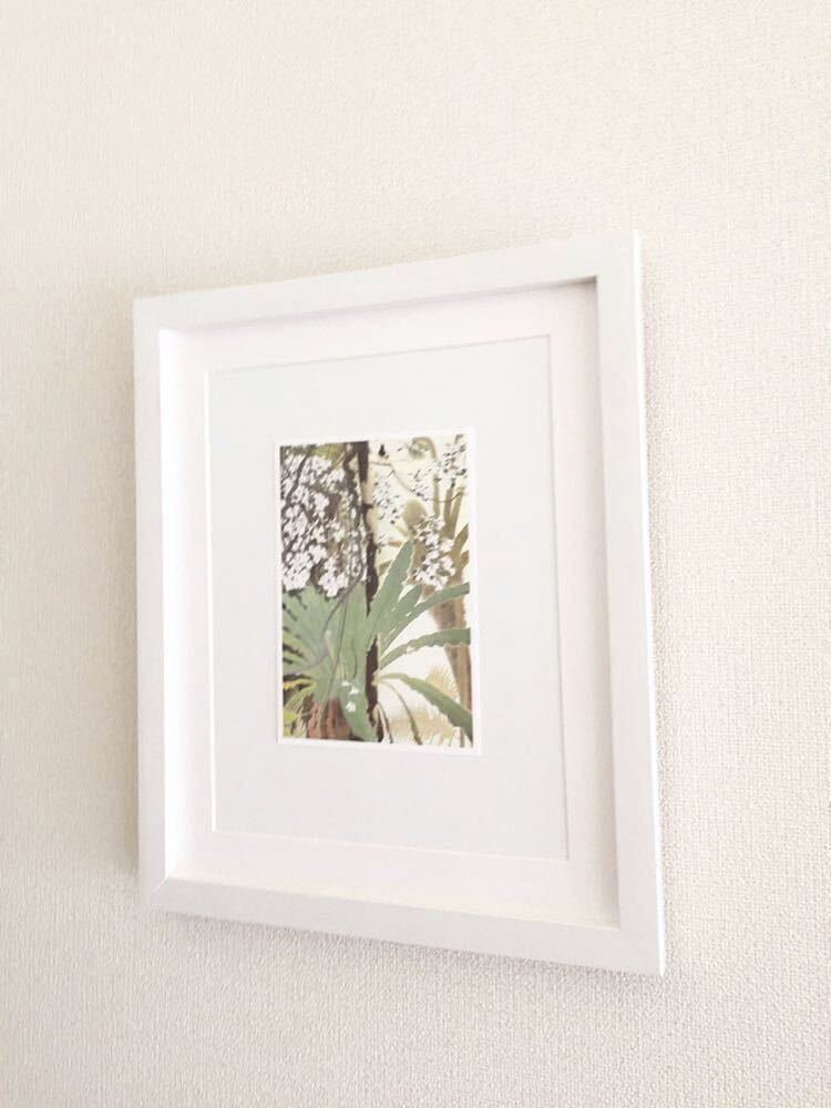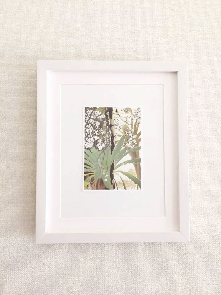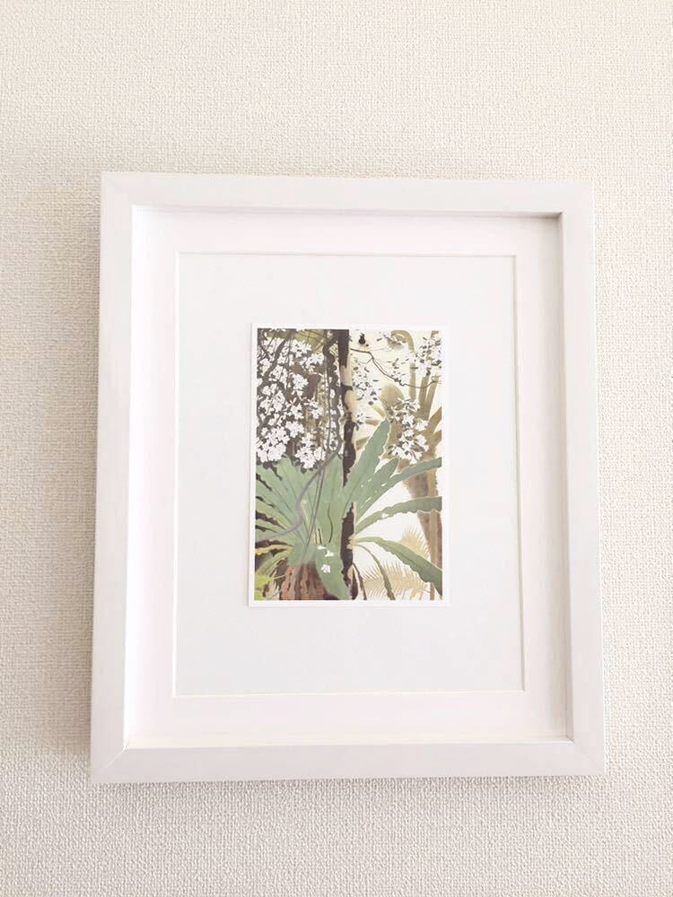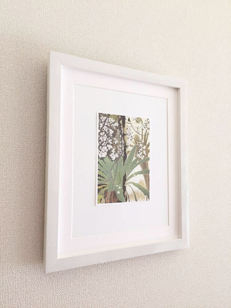 田中一村記念美術館製の「奄美の森シリーズ」の12種類のポストカード(印刷物)を額装したものです。