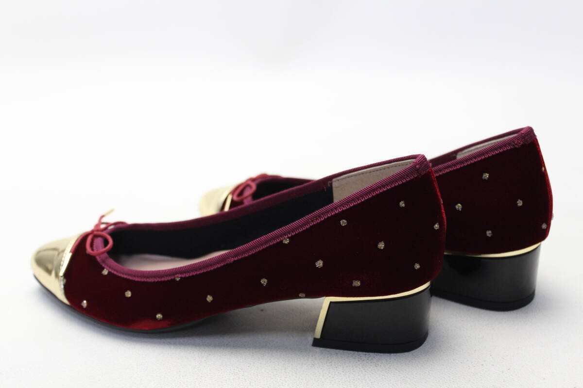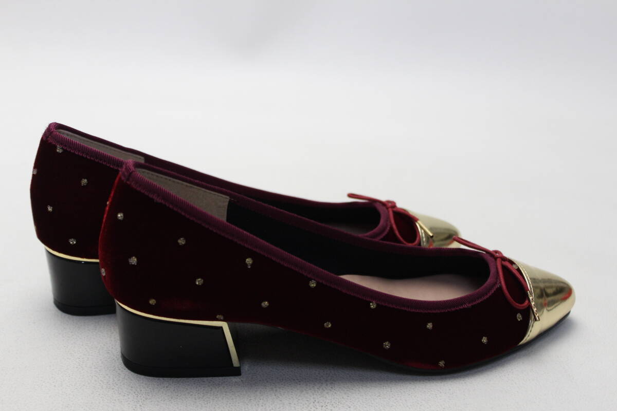 3cmミドルヒールはトゥの切り替えをしっとり輝くメタリックにしました。