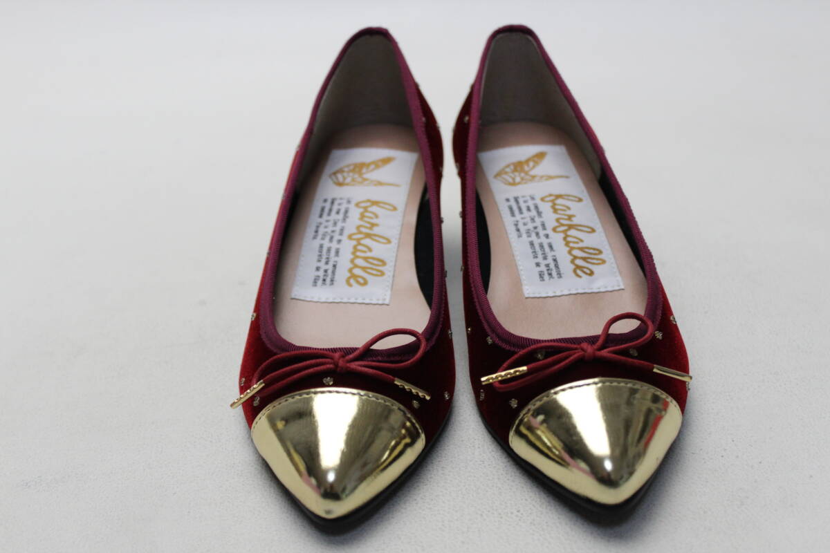 艶やかなベロアにキラキラビジューの付いた、スペシャルオーダーの生地で作り上げた特別な一足。