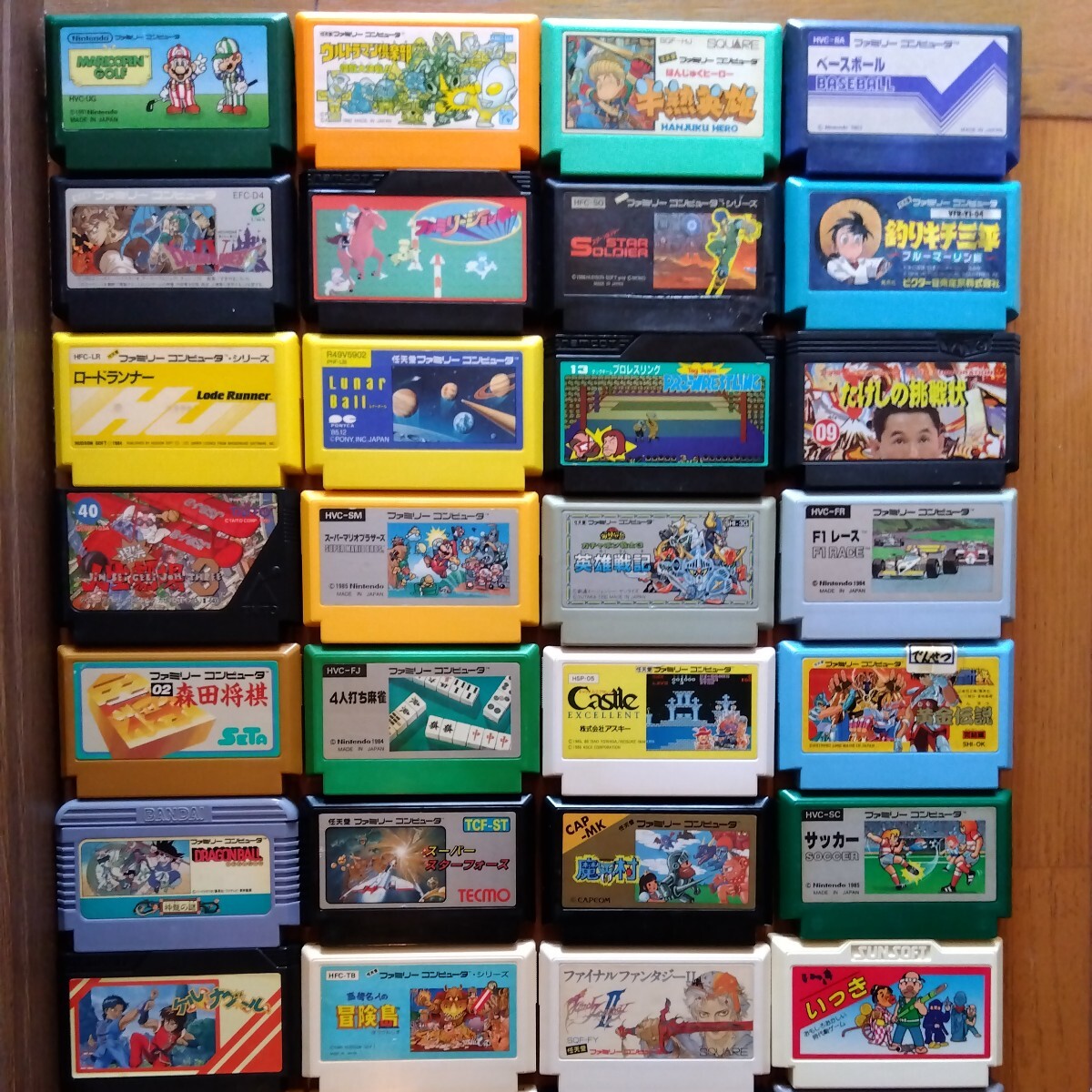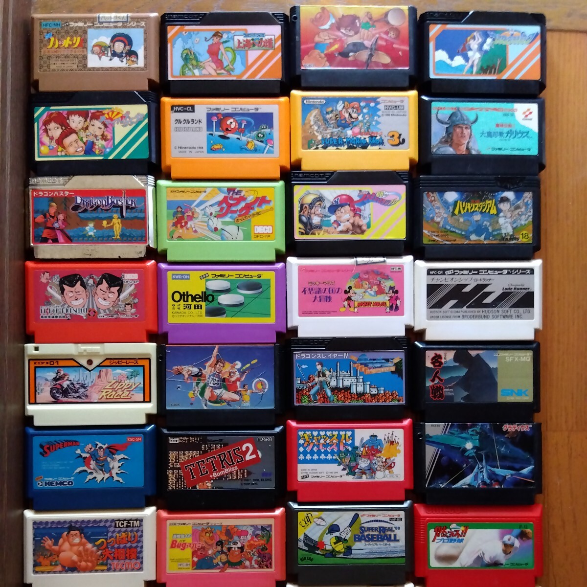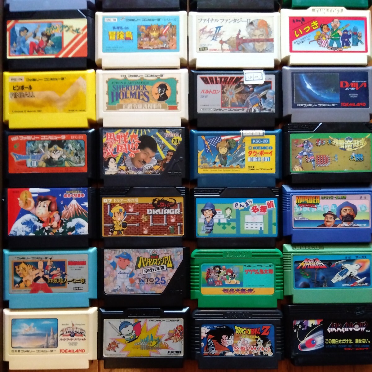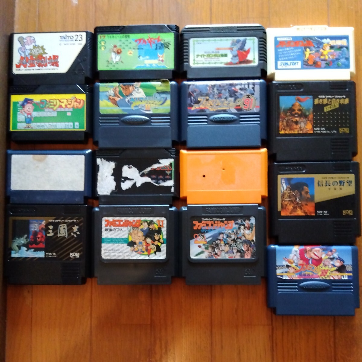 沢山ある商品の中から閲覧して頂き、誠にありがとうございます。本体は購入時に店員さんに確認した所、未開封と言われ、開封はしておりませんが詳細は不明です。後、互換機ですので全てのソフトが遊べるかは分かりません。ほとんどの物は清掃手入れしておりますので、多分、使用出来ると思います。中にはレアなソフトもあるかもしれません。古い物ですので、ラベルの剥がれや名前の記載された物等ございます。あまり詳しくないですがドラクエ3はザラザラだったので後期版かも知れません。ノークレーム、ノーリターンです。よろしくお願いします。