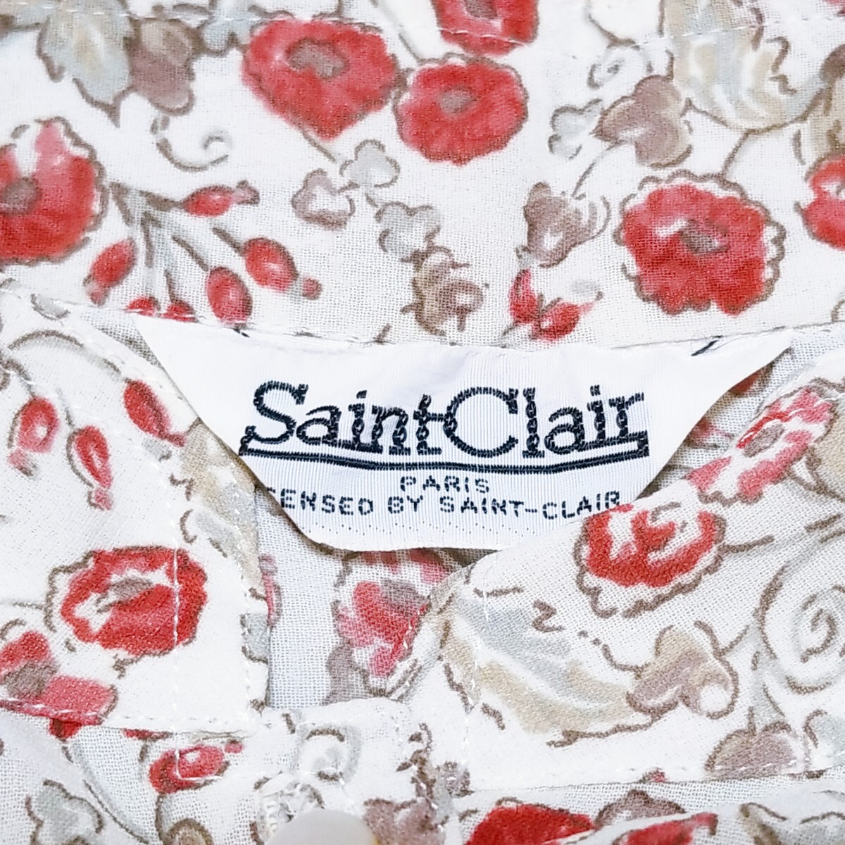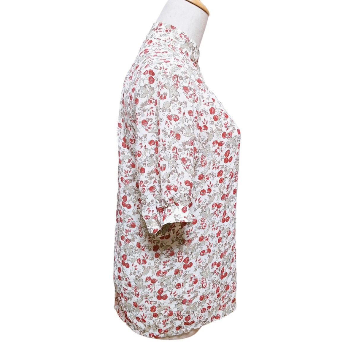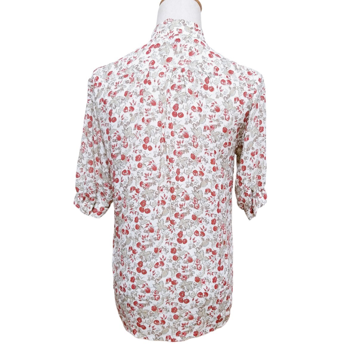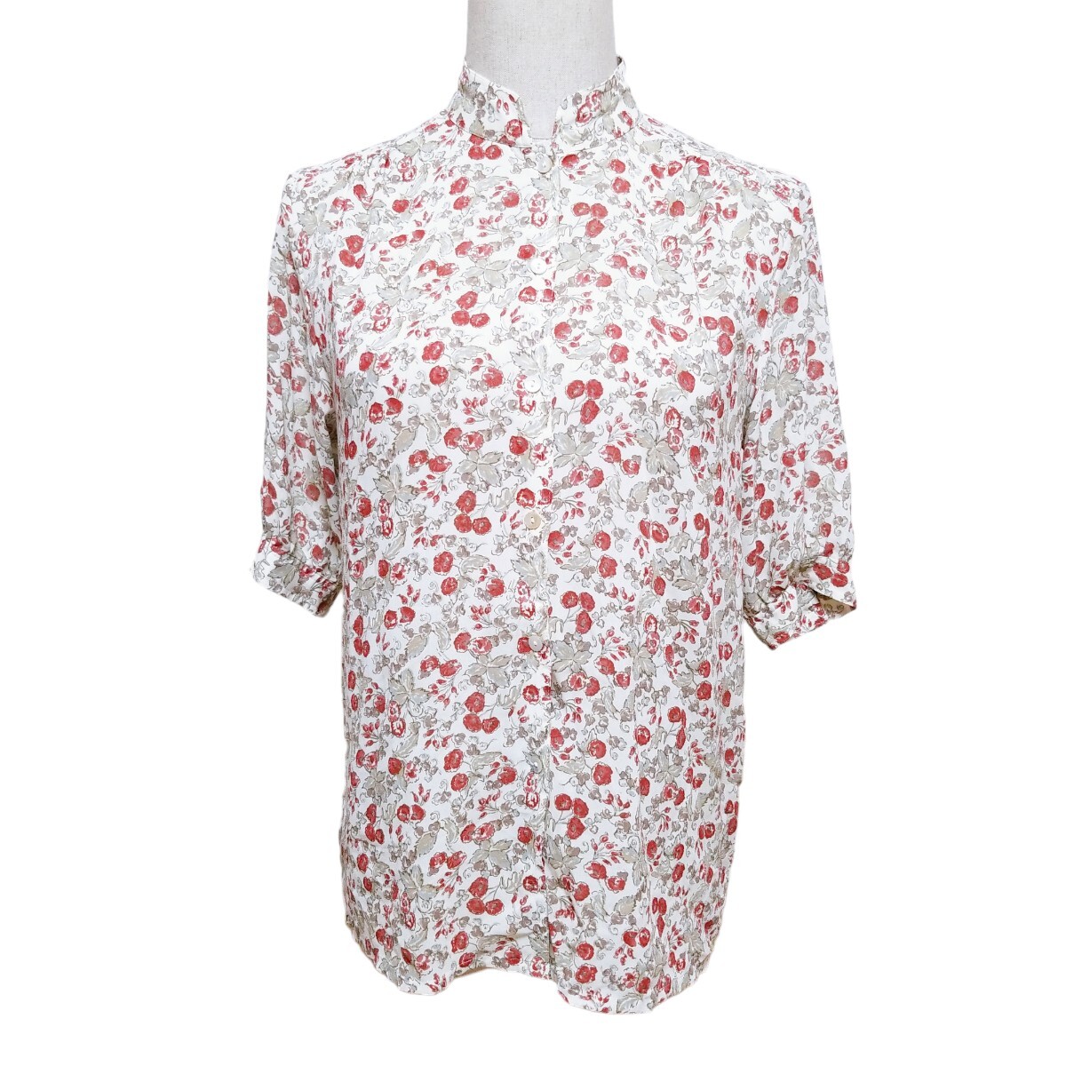 送料無料★Y1519 SaintClair シアーブラウス シャツ バンドカラー シェルボタン 半袖 レディース M~L相当 白 オフホワイト 花柄 総柄 春夏