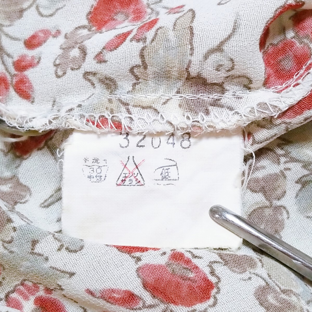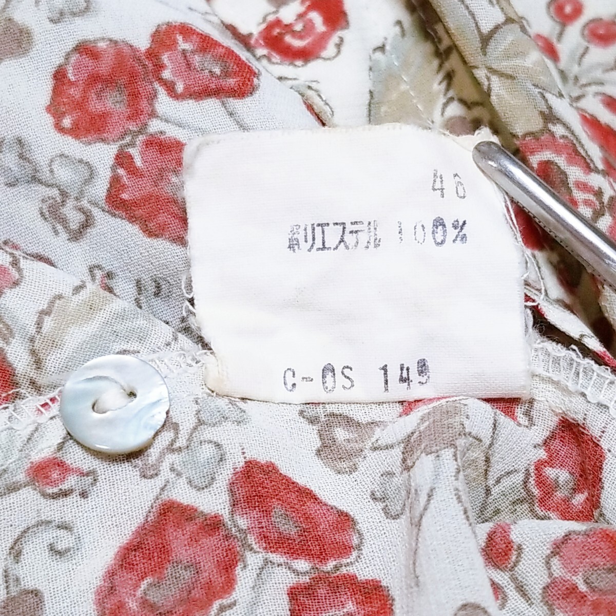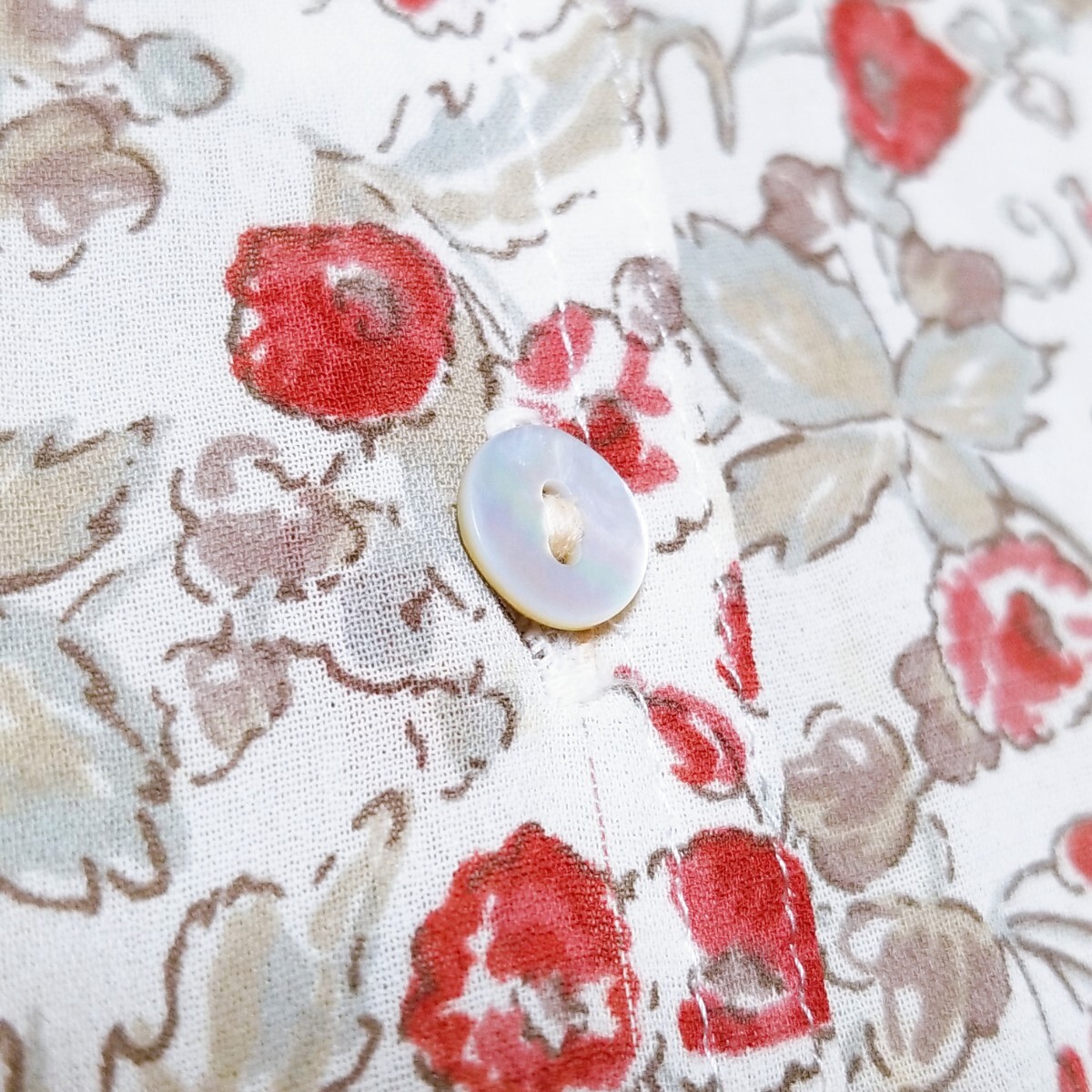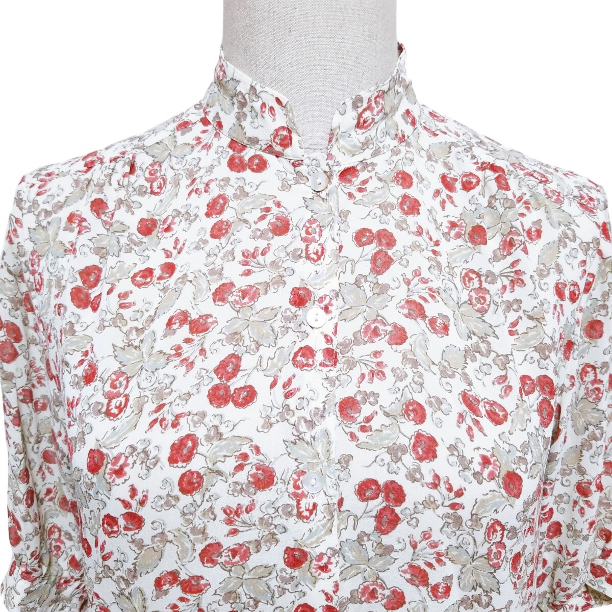 送料無料★Y1519 SaintClair シアーブラウス シャツ バンドカラー シェルボタン 半袖 レディース M~L相当 白 オフホワイト 花柄 総柄 春夏