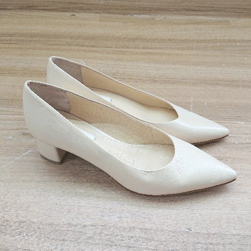 ◇ Odette e ODILE オデット エ オディール ポインテッドトゥ チャンキーヒール パンプス サイズ22 ベージュ レディース E