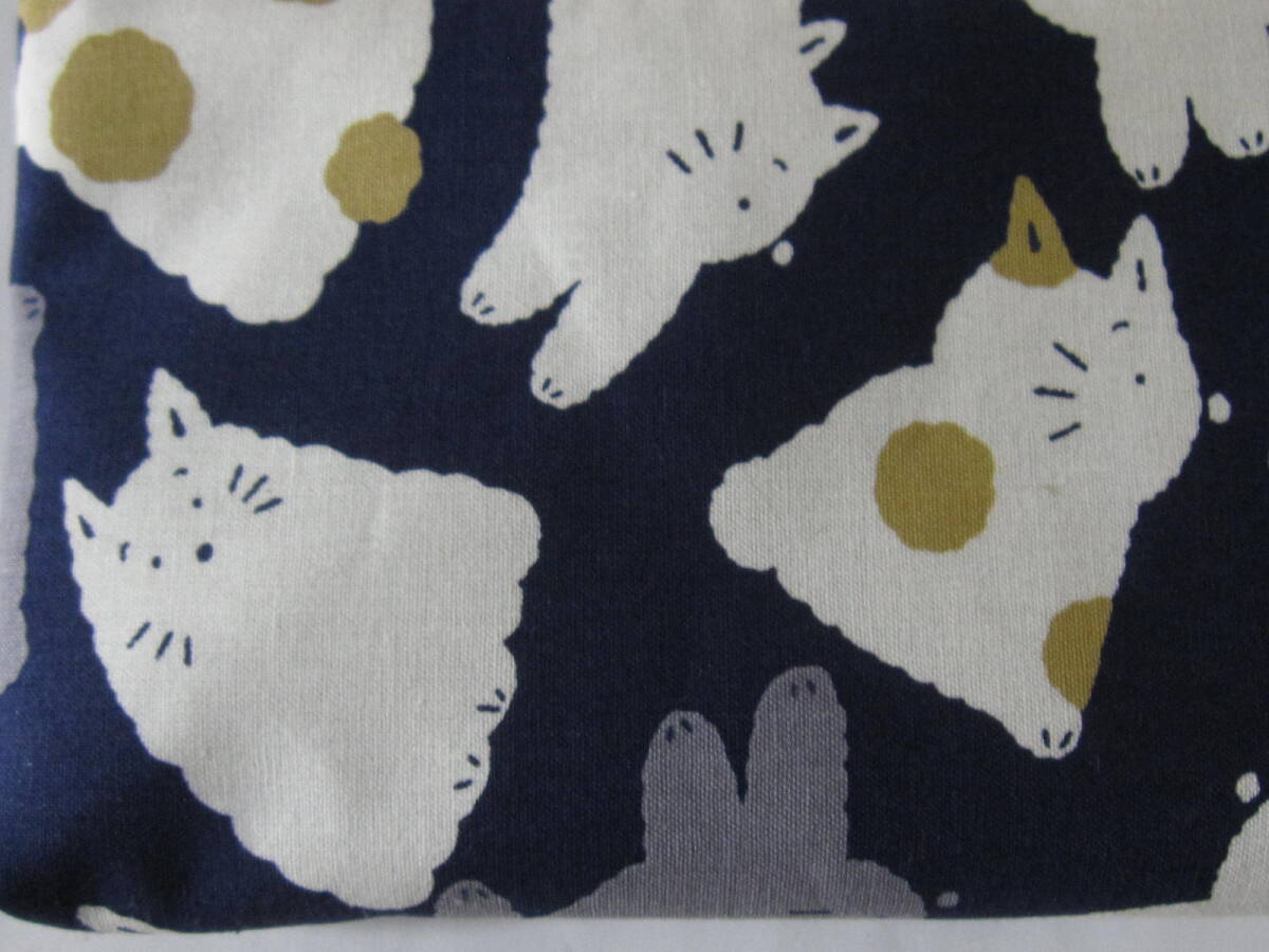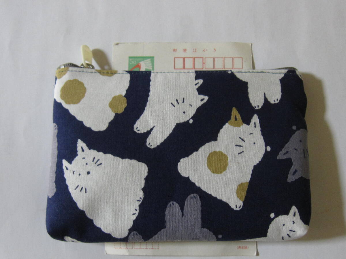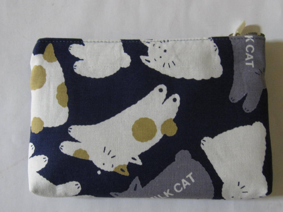 手作り 大 ポーチ 濃紺 猫 イラスト調 ネコ 動物 ねこ 模様 ハンドメイド 春 冬 財布 充電器 小物 眼鏡 男女 兼用 格安 可愛 綿 コン 幅広