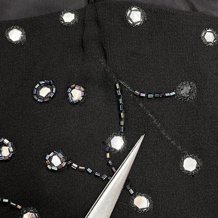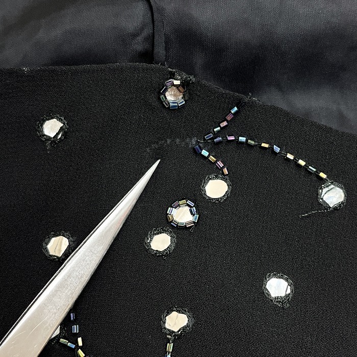 商品状態・ディテールなど | (※実測寸法など、多少の誤差はご容赦下さい。) (※商品は衣類の場合は全て畳んで保管しており、服飾雑貨も靴以外は必要に応じ畳んで保管しております。保管や梱包による畳み皺などはご了承下さい。) ●気になったダメージの場所と種類: ・所々:- ・全体:- ・背中(上):ビーズが無くなっている箇所 ・背中(下):- ・肩:- ・襟:- ・胸:- ・腹部:- ・裾:- ・右袖:- ・左袖:- ・袖口:- ・内側:- ●その他ディテール:- ●付属品など:- ●その他:- |