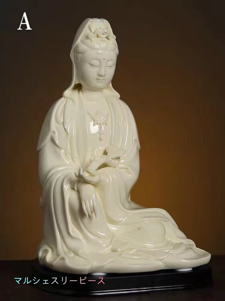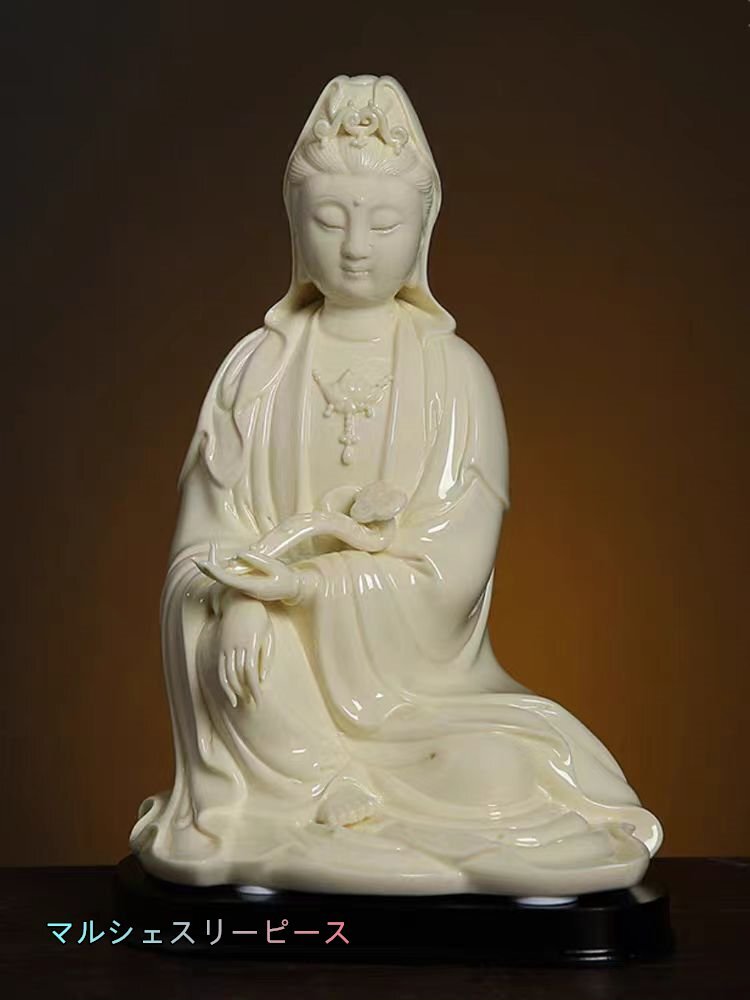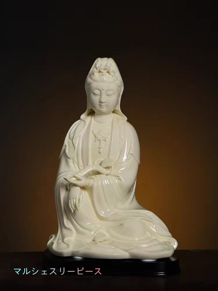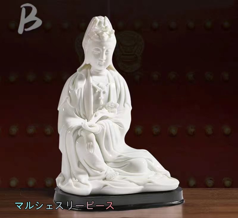 美品 セラミックス 白磁 徳化窯 観音像 仏像 菩薩像 仏教美術  高さ24CM
