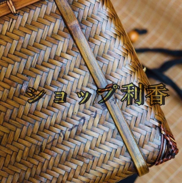 バスケット 収納かご おしゃれ竹籠 編み 取っ手 持ち手  手作りトートバスケット 自然の良品 花火着物かご