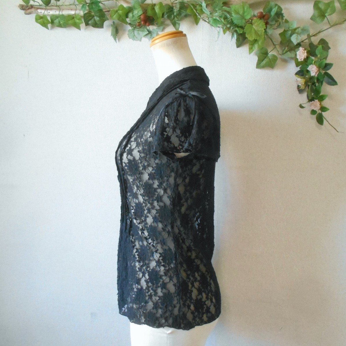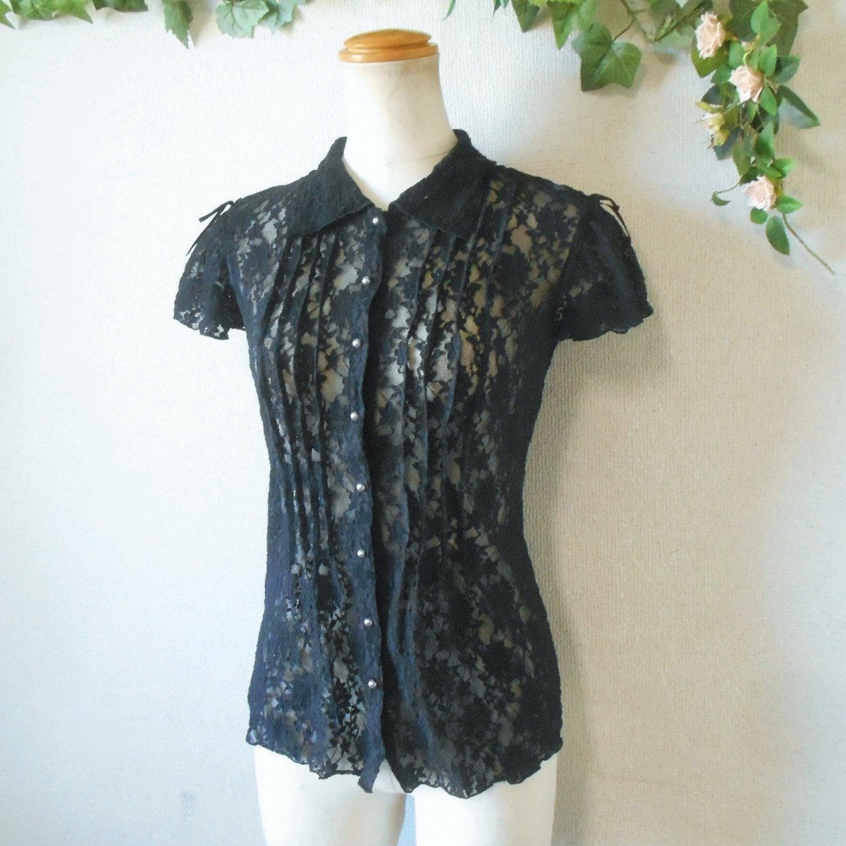 【ポイント】レストローズのシャツブラウスになります。お色は黒色で夏を中心に着ていただけるお品です。