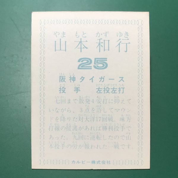 1978年 カルビー プロ野球カード 78年 阪神 山本 七回まで散発4安打に抑えていながら~    【A82】