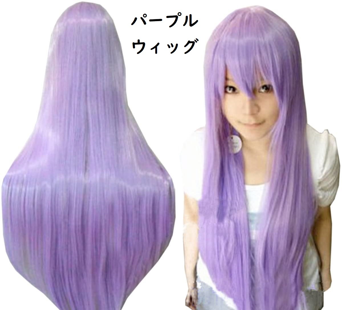 送料無料 パープル 紫 ロングストレート ウィッグ 高品質 かつら ハロウィン カツラ コスプレ 仮装 フリーサイズ No.407 A