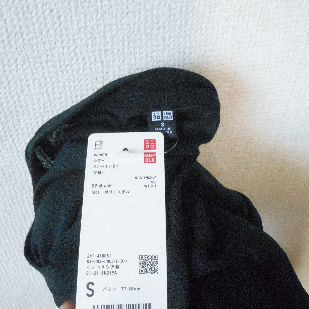 新品 タグ付き ユニクロ UNIQLO シアークルーネック T レディース S 未使用 黒