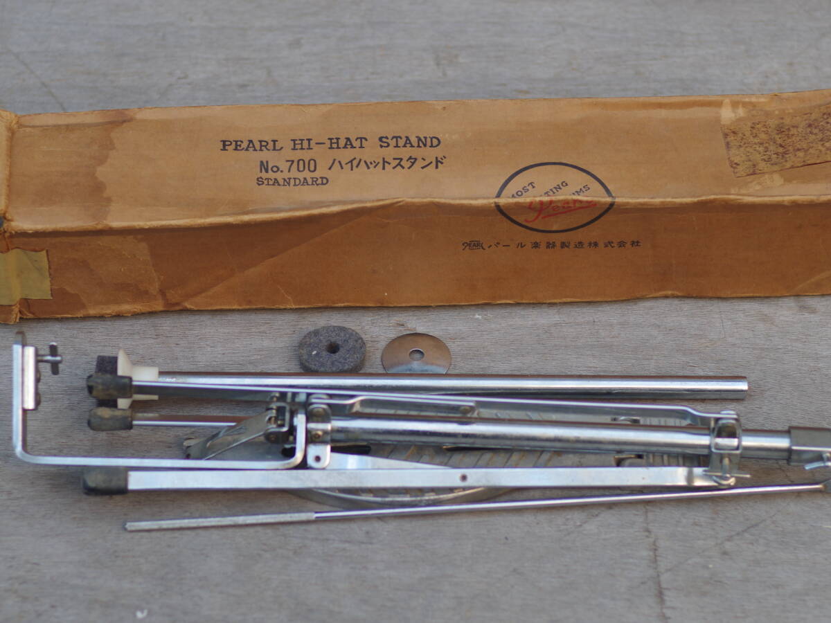 こちらはパール Pearlのハイハットスタンド です。ペダルにPearlのロゴがないので、おそらくH-600だと思われます。トップ部分クラッチパーツとフロアプレートのネジが2本中1本、欠損しています。コレクターよりお譲りいただきました。現状でのお渡しです。使用に際してメンテナンスの必要が発生した場合はお客様自身でお願いいたします。セカンドハンド品につき、傷・汚れなどございます。よろしくおねがい致します。
