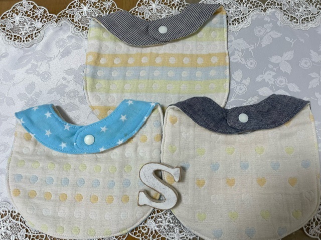 商品説明☆アクセスありがとうございます(*^-^*) ◆【 スタイ 3点セット 】◆ ★首元に違和感なく気にならない程度のほど良い厚みで 重過ぎず 薄過ぎず 適度な吸収で清潔に~を考慮した おしゃれで実用的なスタイ~ (∩.∩) 可愛い色柄のリバーシブルのスタイです~(^-^*)♪ ★上質な6重ガーゼとダブルガーゼを使用しています。 ************************* ★【 素材 】★ ※6重ガーゼ+ダブルガーゼ(計8重ガーゼ) ・片面 ダブルガーゼ(綿100%) ※タグ付きは ASHIATOYAさんのタグを付けています ・片面 6重ガーゼ カラフル・ドット とハート(綿100%) ★【 サイズ (約) 】★ *首周り31cm前後 ・首下~長さ13cm ・幅20cm ★プラスナップ留め 簡単装着♪ ★頻繁にお洗濯をしても形状が整え易く 内側の切れ端が 解れないように 顔首下以外は端ミシンをかけて仕上げています ************************* 他にもいろいろ出品しています。よろしかったらご覧ください♪ 発送方法・定形外郵便 ★複数落札の場合★ 最初に【おまとめ依頼をしてください】 コメント☆心を込めて作製しましたが素人の趣味で作った手作り品です 既製品のような完璧なものではありません ご理解の上でご入札下さい お互い気持ちのいいお取引をするため不明な点は入札前にご質問ください♪ (^0^)どうぞよろしくお願い致します♪ ![]() |