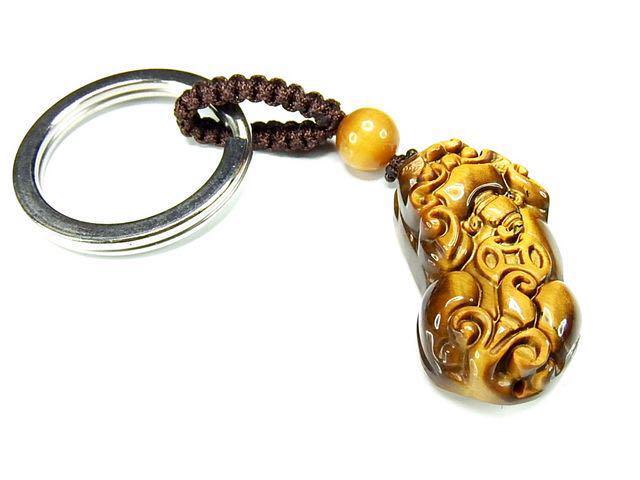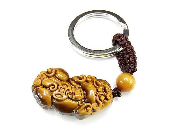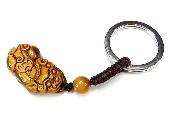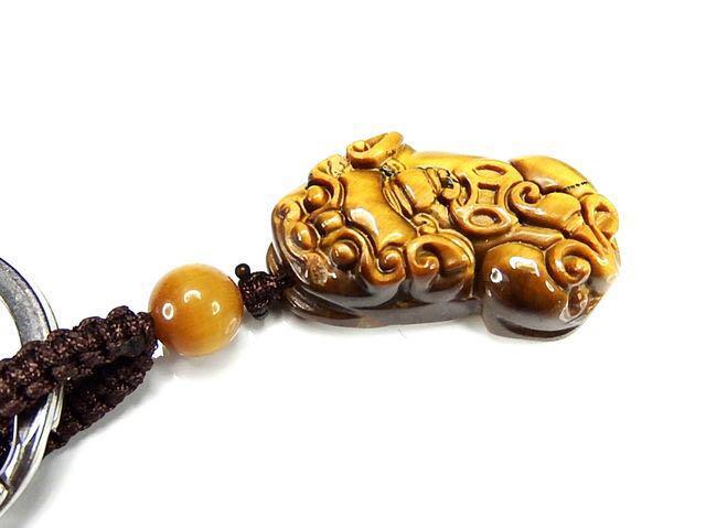 天然石ヒキュウ彫りキーホルダーAAタイガーアイ中型金運仕事運石街プライム