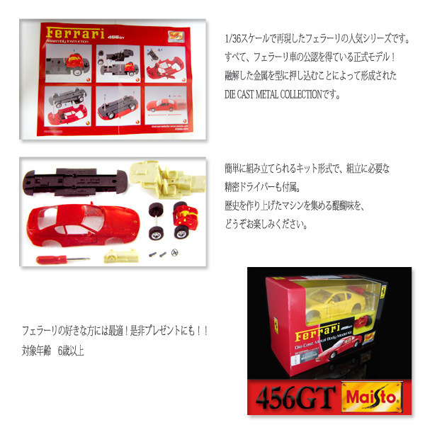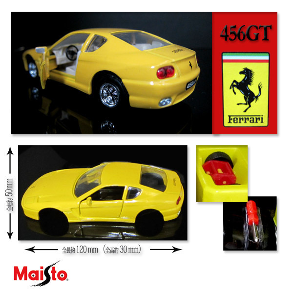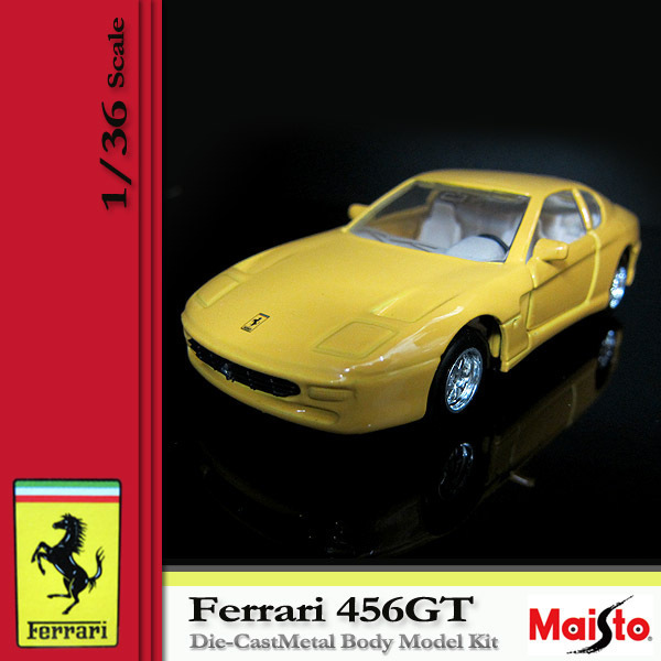 Maisto Ferrari 456GT ミニカー 1/36 Die Cast Metal Body 黄(4)