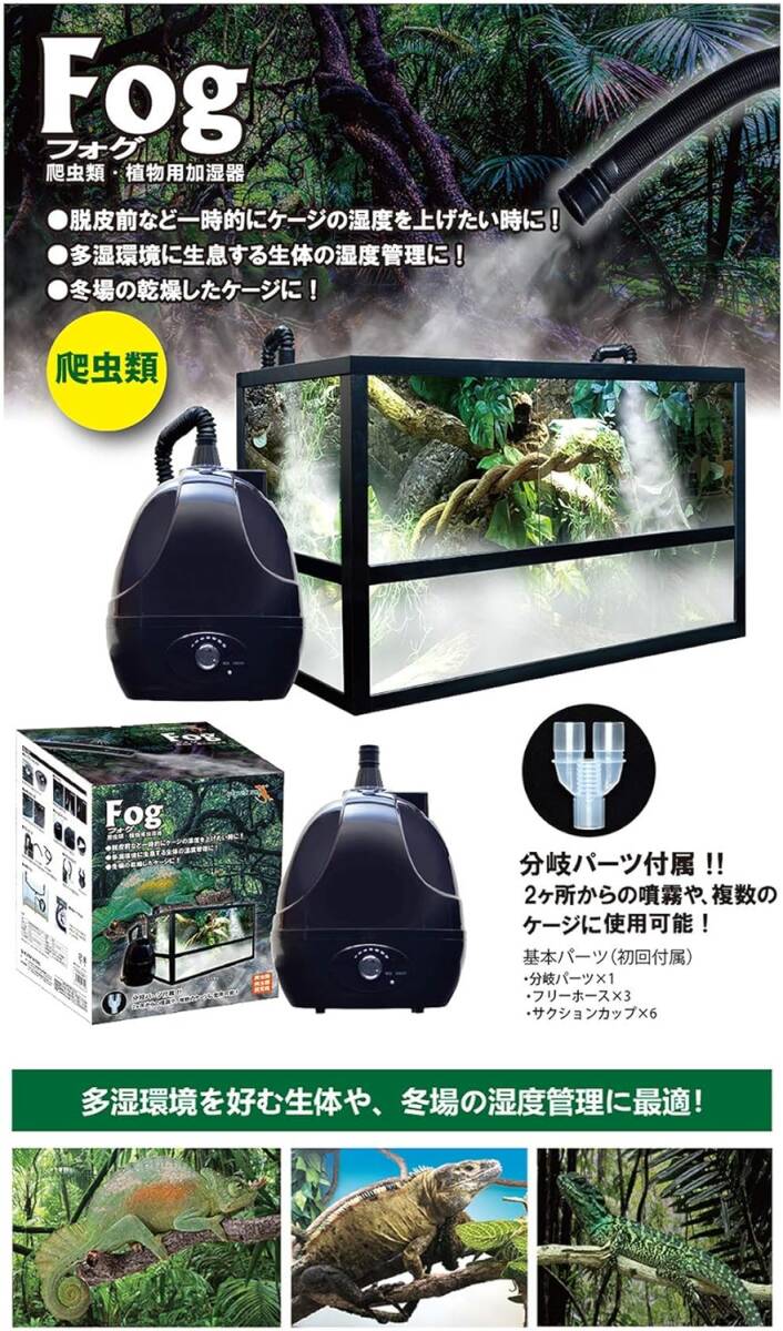 爬虫類ケージや植物用の湿度管理に最適な加湿器です。スモーク状の霧で優しく湿度を上げることができます。