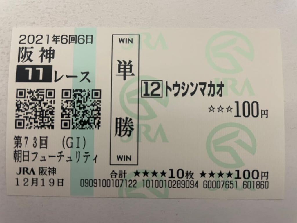 トウシンマカオ 2021年朝日杯フューチュリティS 現地ハズレ単勝馬券です