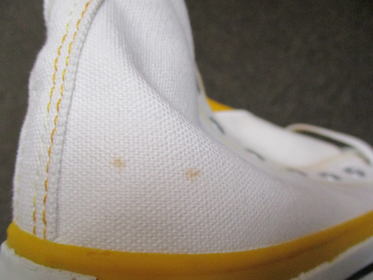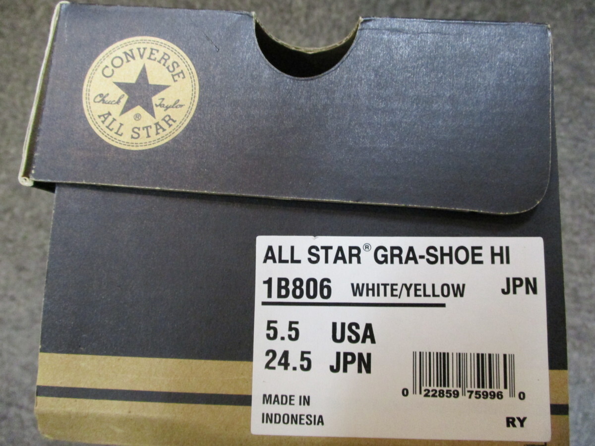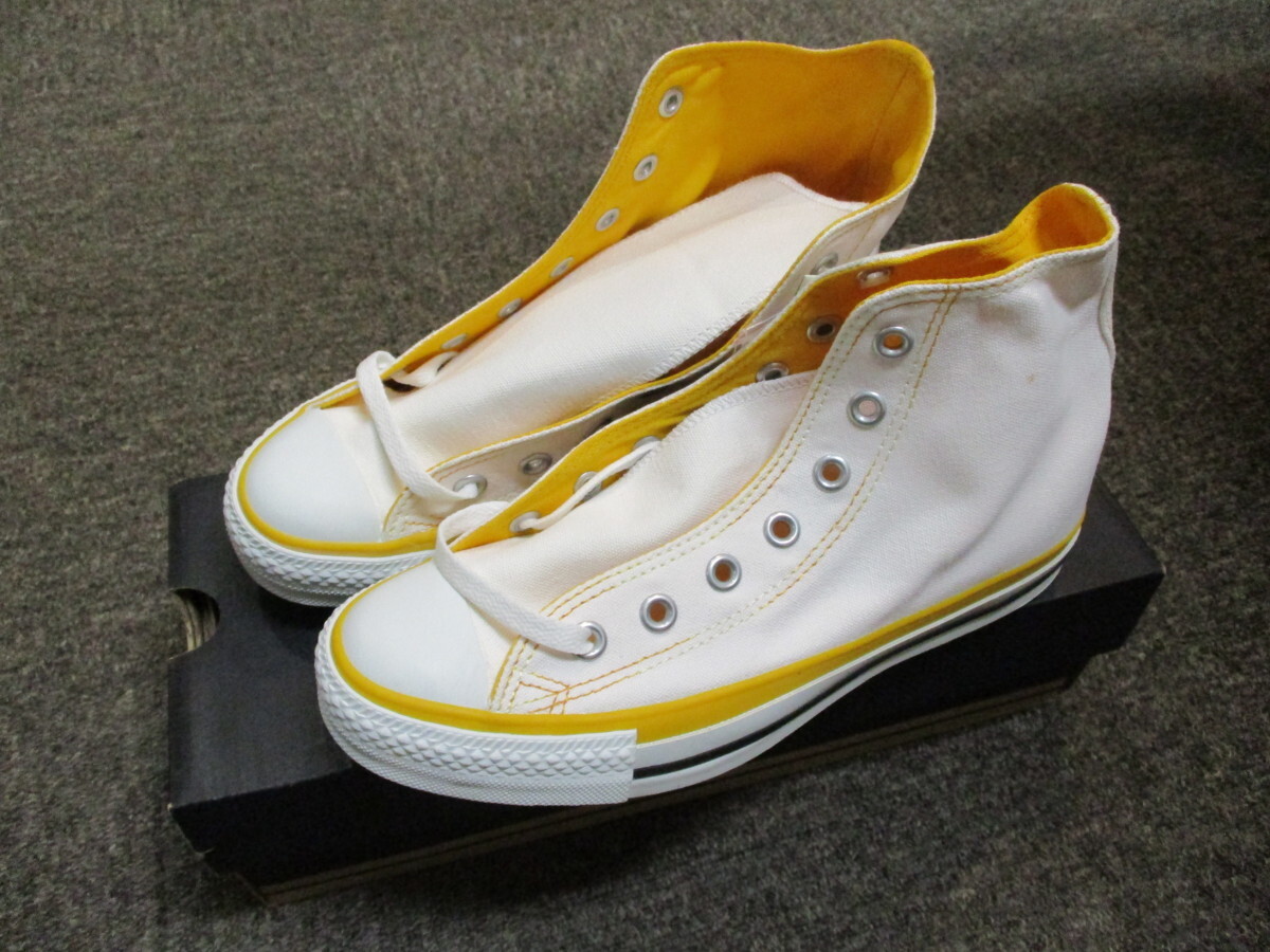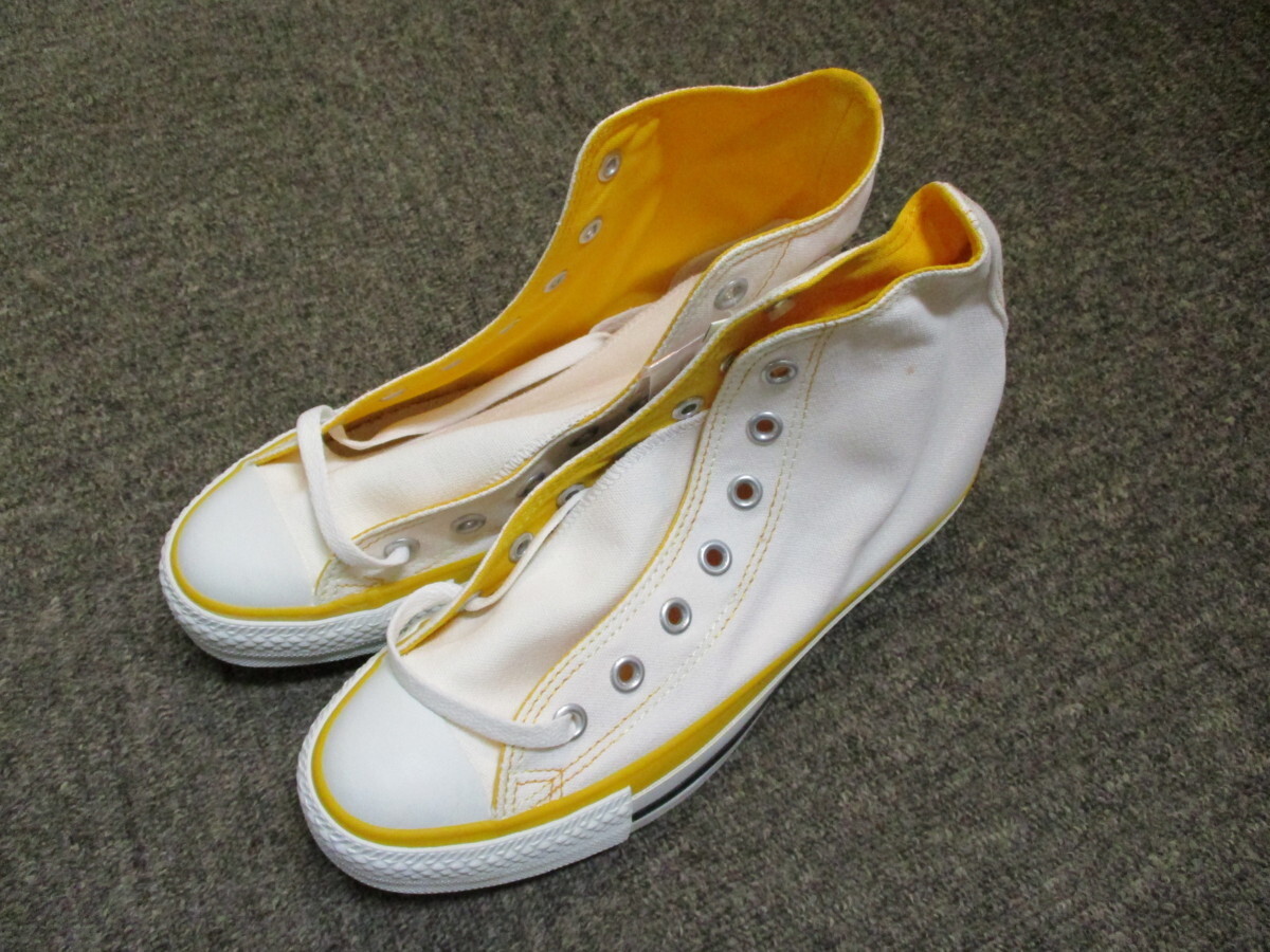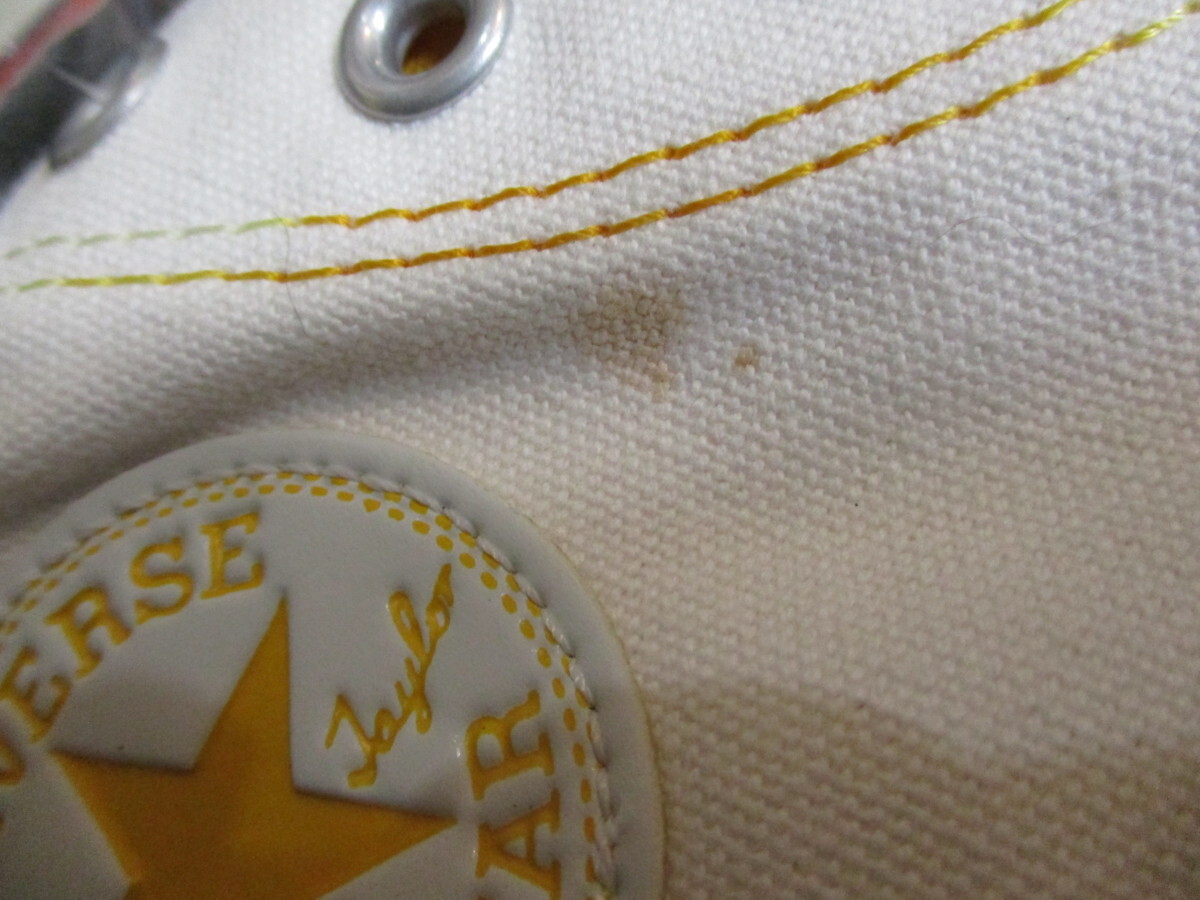 未使用のコンバース オールスターです。 未使用買取品になりますので一度人の手に渡った商品になります。 上記ご理解頂ける方のみご入札ください。 未使用ですが白ベースなので少しシミみたいなものがあります。(画像確認) お色目はホワイトベースにイエロー系です。 靴ひもが2種類付いています。 ご不明な点はご質問の上、画像をよくご覧の上NC/NRでお願い致します。 |