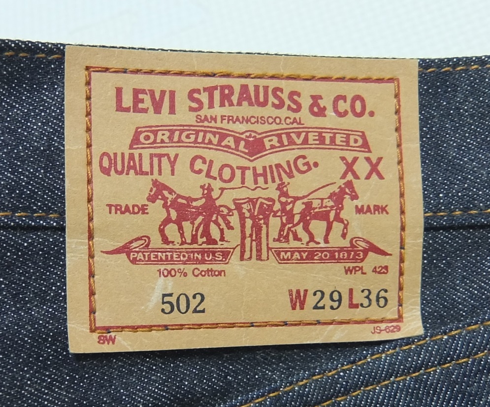 美品 未洗い 日本製 LEVI'S 502 BIG E デニムパンツ 紺 W29 ジッパーフライ 赤耳 リーバイス