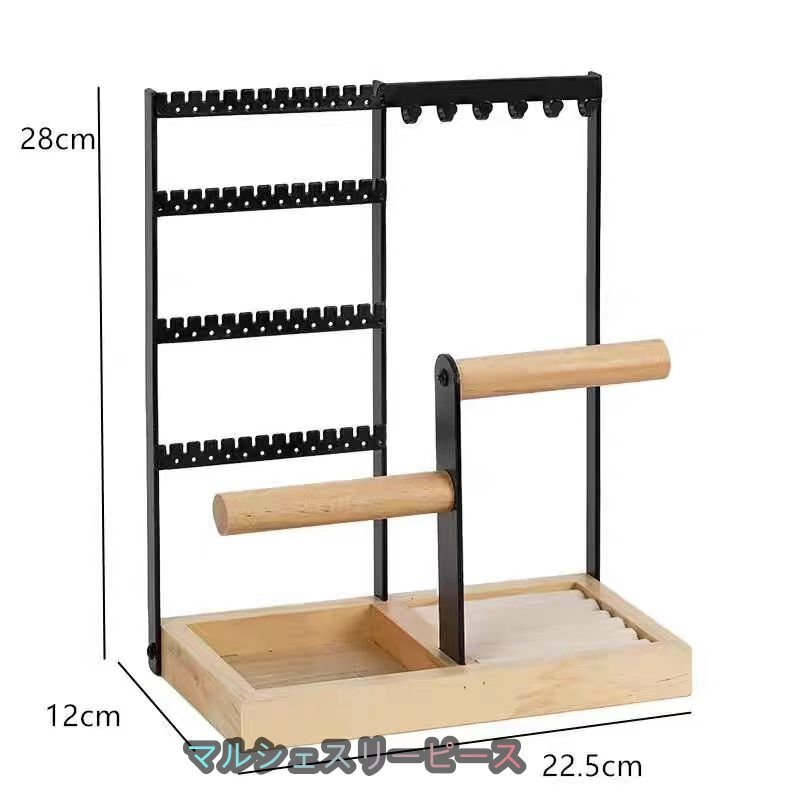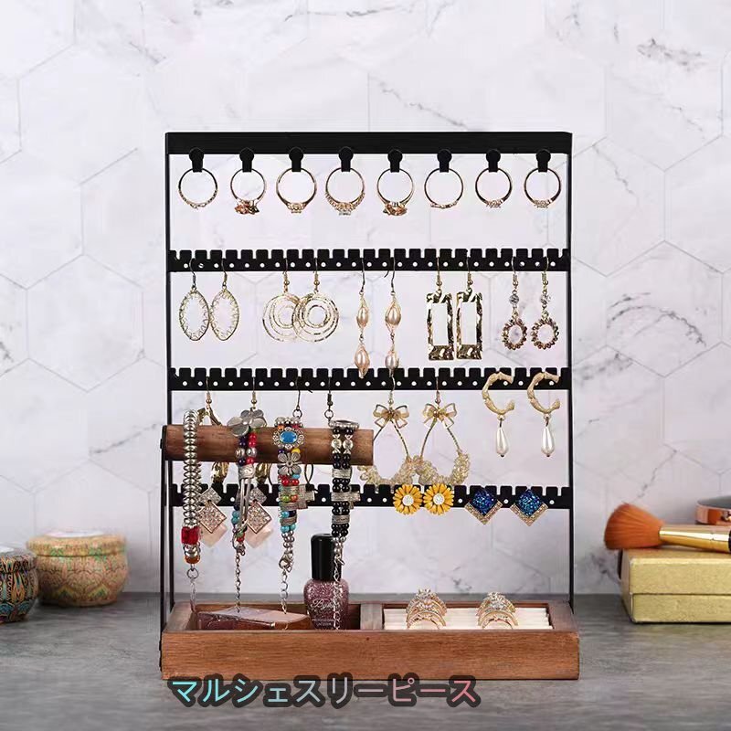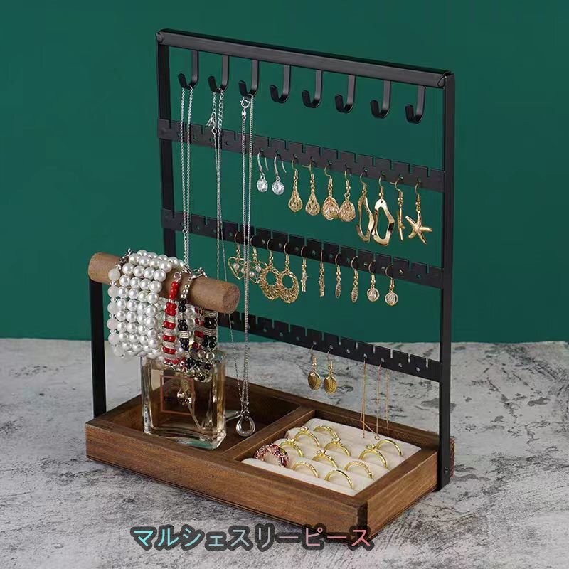 イヤリング・ピアススタンド 小物トレイ-ブラック ジュエリースタンド アクセサリー収納 ネックレス・ブレスレット掛け