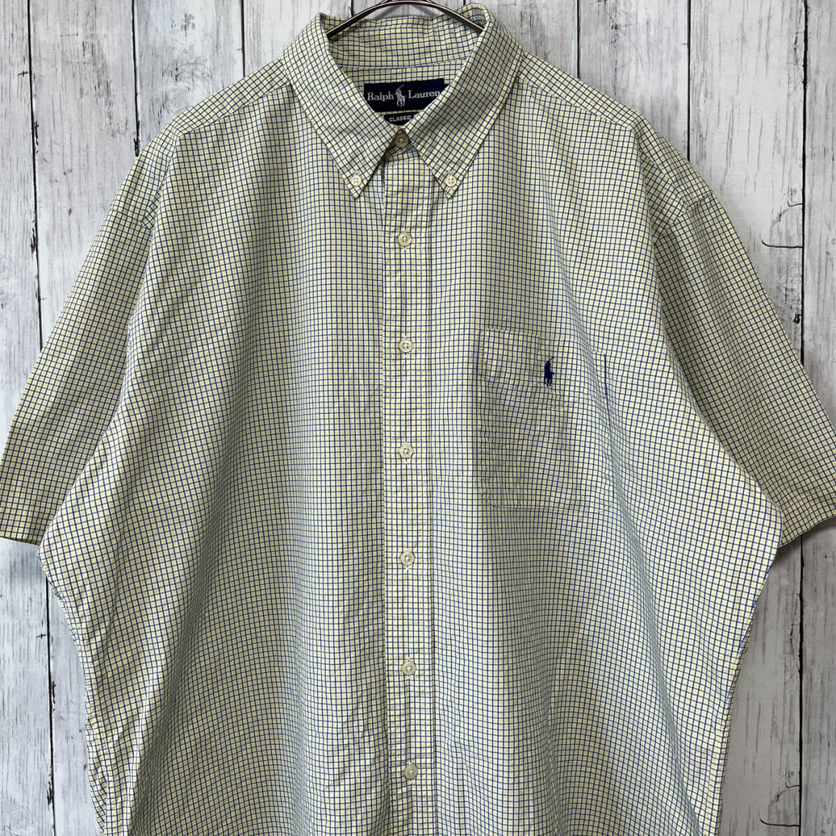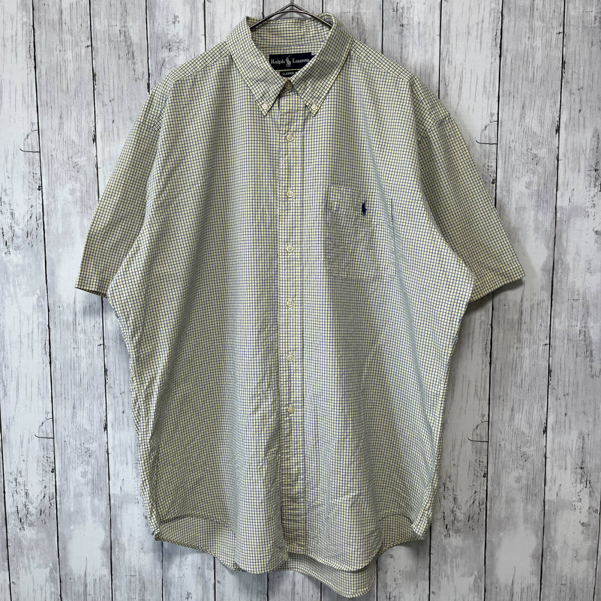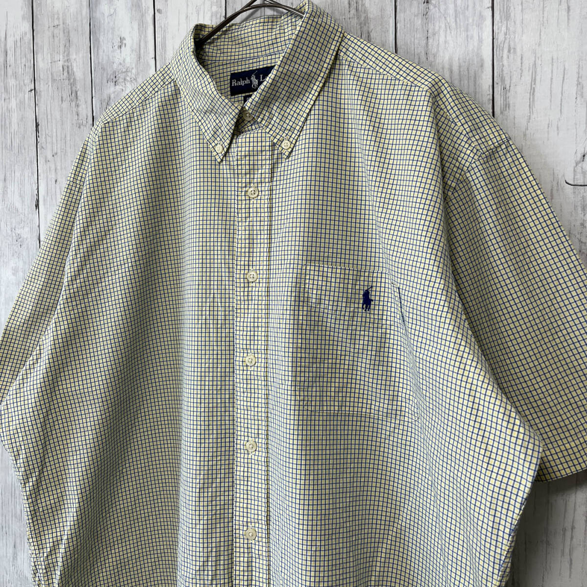 ラルフローレン Ralph Lauren チェックシャツ 半袖シャツ メンズ ワンポイント コットン100% XLサイズ 5‐528