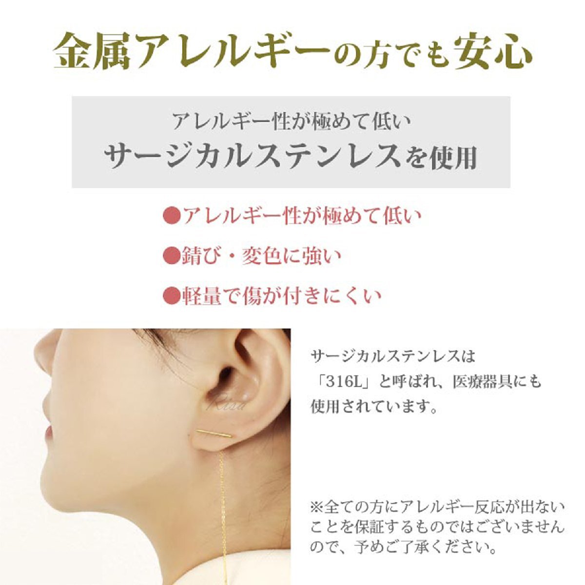 ●サージカルステンレスを使用していますので、金属アレルギーが出てしまう方にもおすすめ。