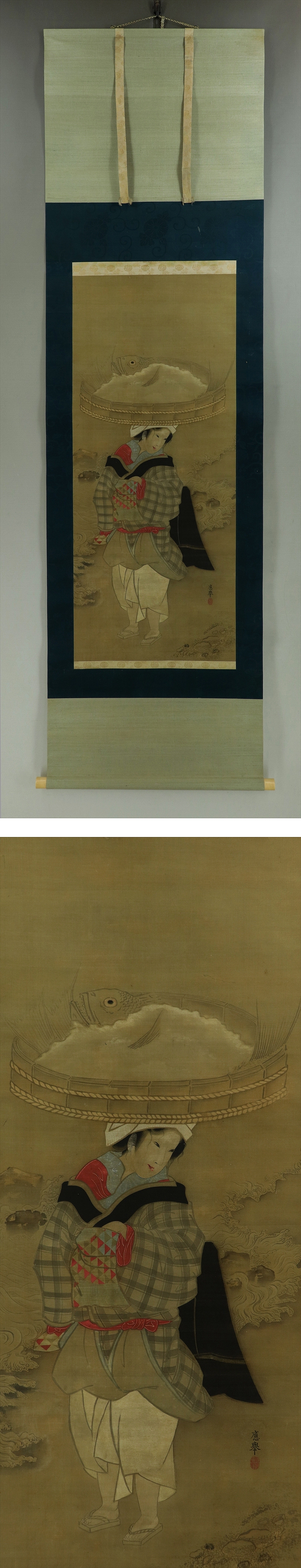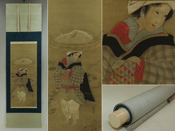 | №2402042 珍品【模写】円山応挙【海女図】◆絹本◆合箱◆掛軸 | |