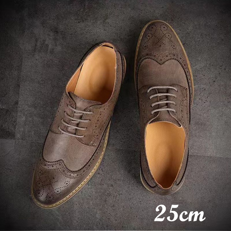 ウイングチップシューズ メンズ メダリオン メンズシューズ トラッド スエード調 大人 きれいめ グレー 25cm
