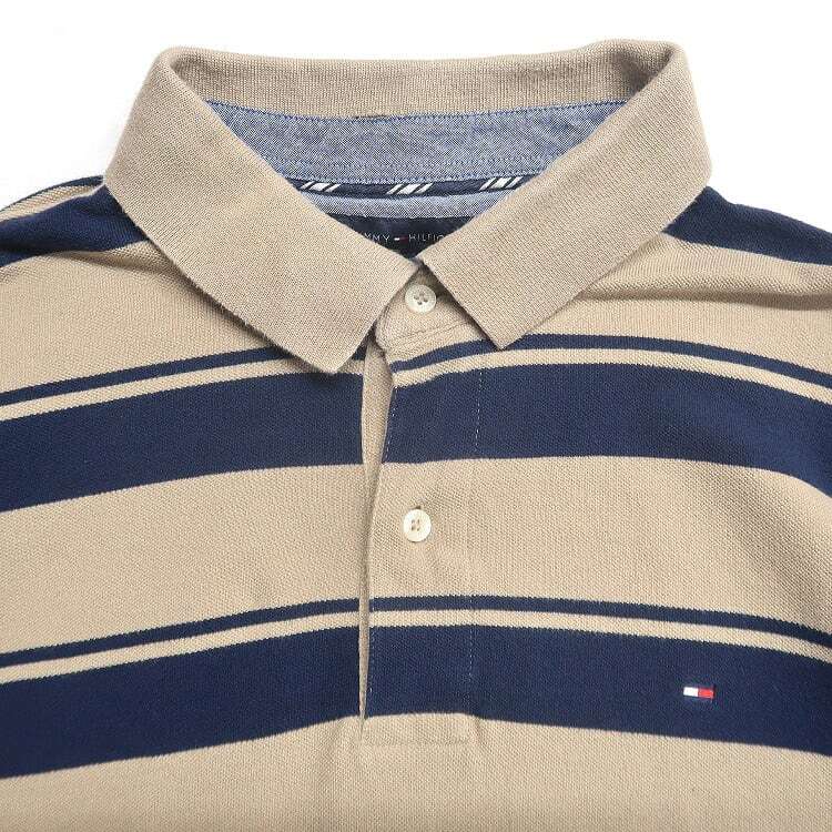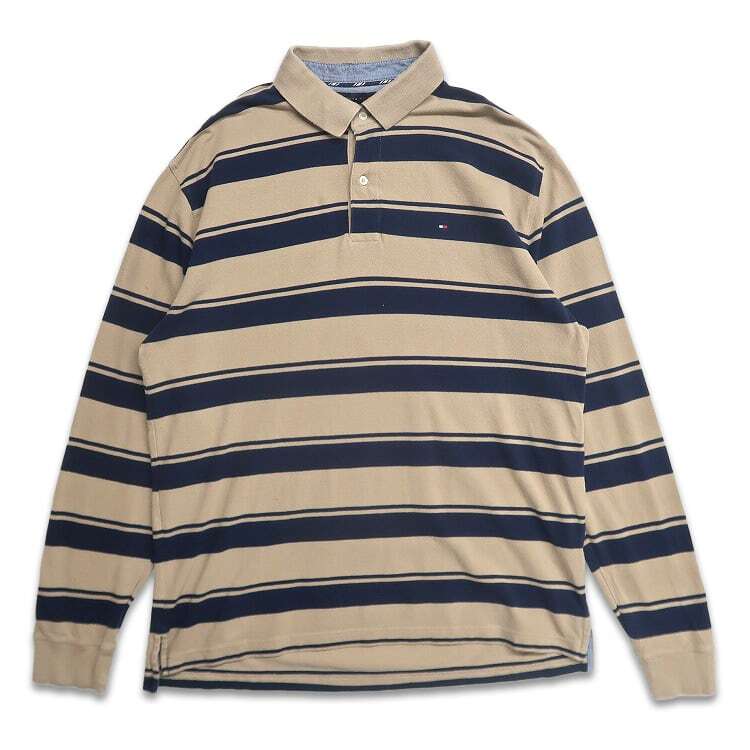 古着 TOMMY トミーヒルフィガー 長袖ポロシャツ ボーダー 表記:XL gd402215n w40407