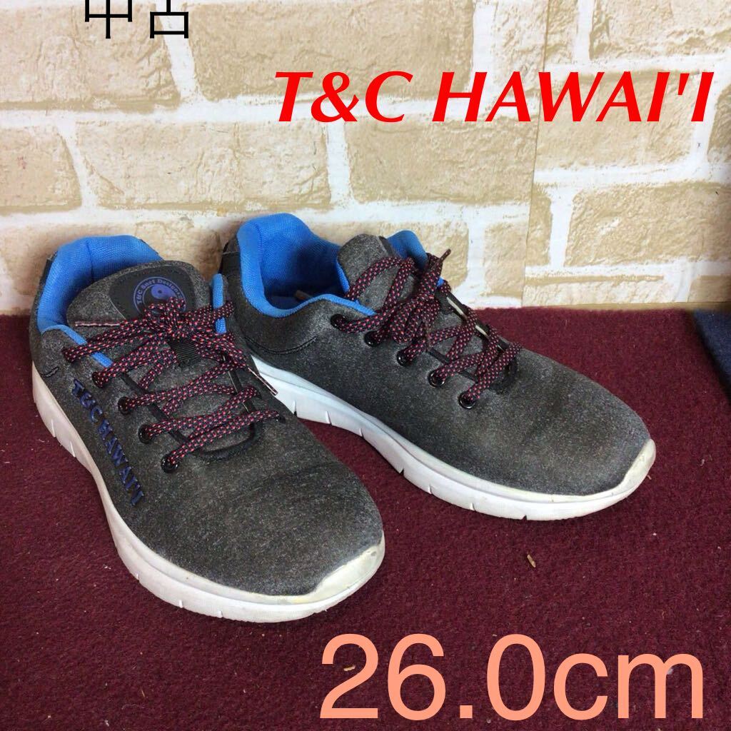 【売り切り!送料無料!】A-356 T&C HAWAI'I!スニーカー!グレー!ブラック!26.0cm!普段履き!ウォーキング!中古!