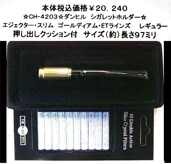 フィルター仕様のダンヒルシガレットホルダーです。“ダンヒル ダブル アクション クリスタルフィルタアー”はタバコの煙の流れるスピードをは早めることで、不純物を除去するインパクションシステムと、特殊鉱物による濾過システムとを採用しており、優れたフィルター効果を発揮します。白い結晶体が濃い茶色に変わったら、新しいフィルターと交換して下さい。喫煙具◆18-96130◆ダンヒルホルダー用替フィルター◆ホルダーサイズ:長さ97mmx太さ12mmx重さ9g。ビンゴが出品している全ての商品は、店頭販売、他オークション販売、ショッピング販売等重複し販売しております。時間差で売れ切れや、出荷点検検等で傷が付いていたり破損している事もあります。従いまして、お買い上げ頂きましても出荷出来ない場合も有りますので、予めご了承の上お買い求め下さい。尚、同じ型の商品が取り寄せ可能の場合は、改めてその旨お伝え致し、ご了承の際は数日お待ち頂く事になります。ご注文商品は他商品と同梱配送出来ますので、何個ご注文されても送料は1口分です。1.レターパック発送 ¥600 日時指定不可。(郵便レターパック)。2.宅配便発送税込み ¥880日時指定必須(沖縄/離島は別途価格)。必ず 受取日時 をご指定下さい。(例:15日 18~20 時必着)再配達防止の為。 (業者は当社にお任せ)。3.代金引換発送引手数料税込み ¥1、210 日時指定必須(沖縄/離島は別途価格)。 必ず 受取日時 をご指定下さい。(例:15日 18~20 時必着)再配達防止の為。(業者は当社にお任せ)。