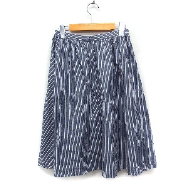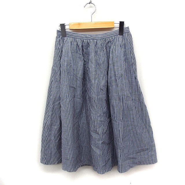 ドロシーズ DRWCYS ストライプ ギャザー スカート ひざ下丈 ミディ丈 綿麻 1 グレー 灰 /FT27 レディース