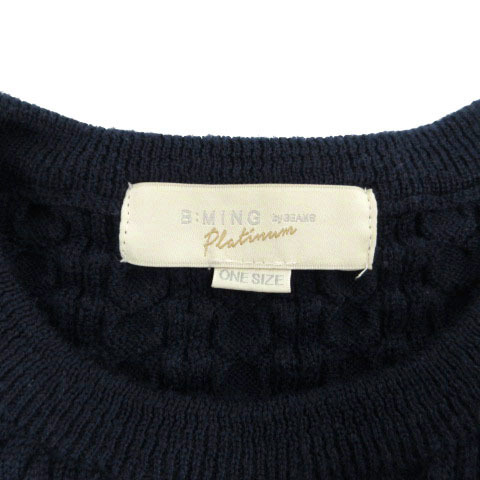 ビーミングバイビームス B:MING LIFE STORE by BEAMS ニット セーター 93-15-0523-213 丸首 長袖 ウール ダブルケーブル編み 紺 ONE SIZE