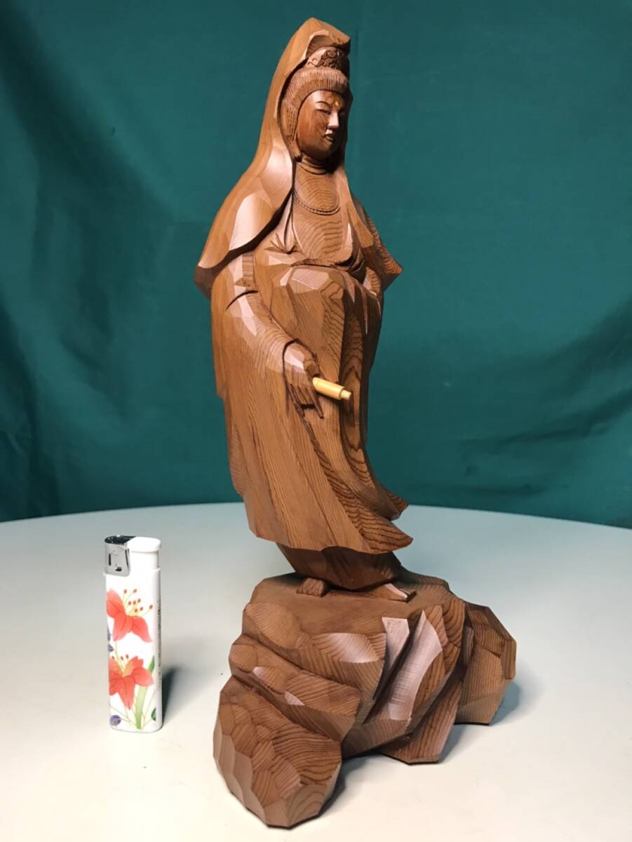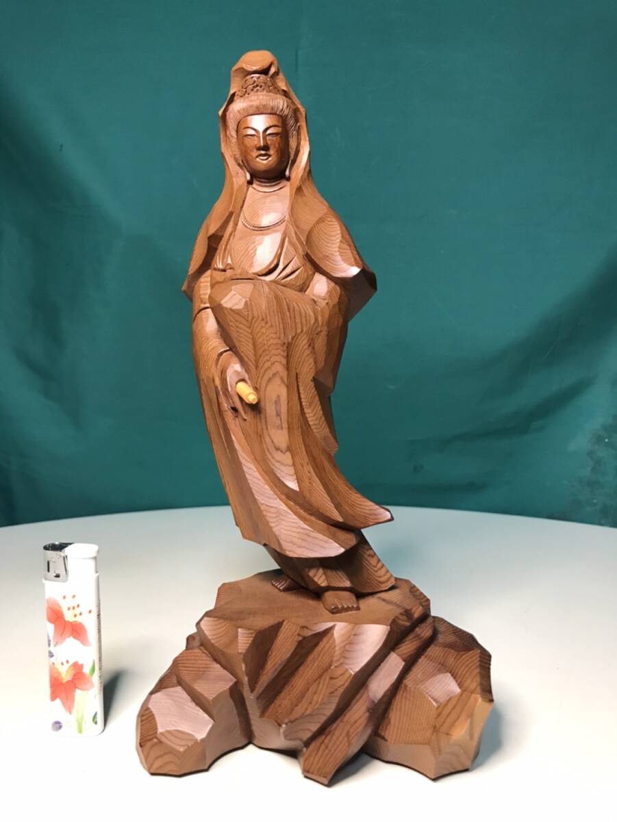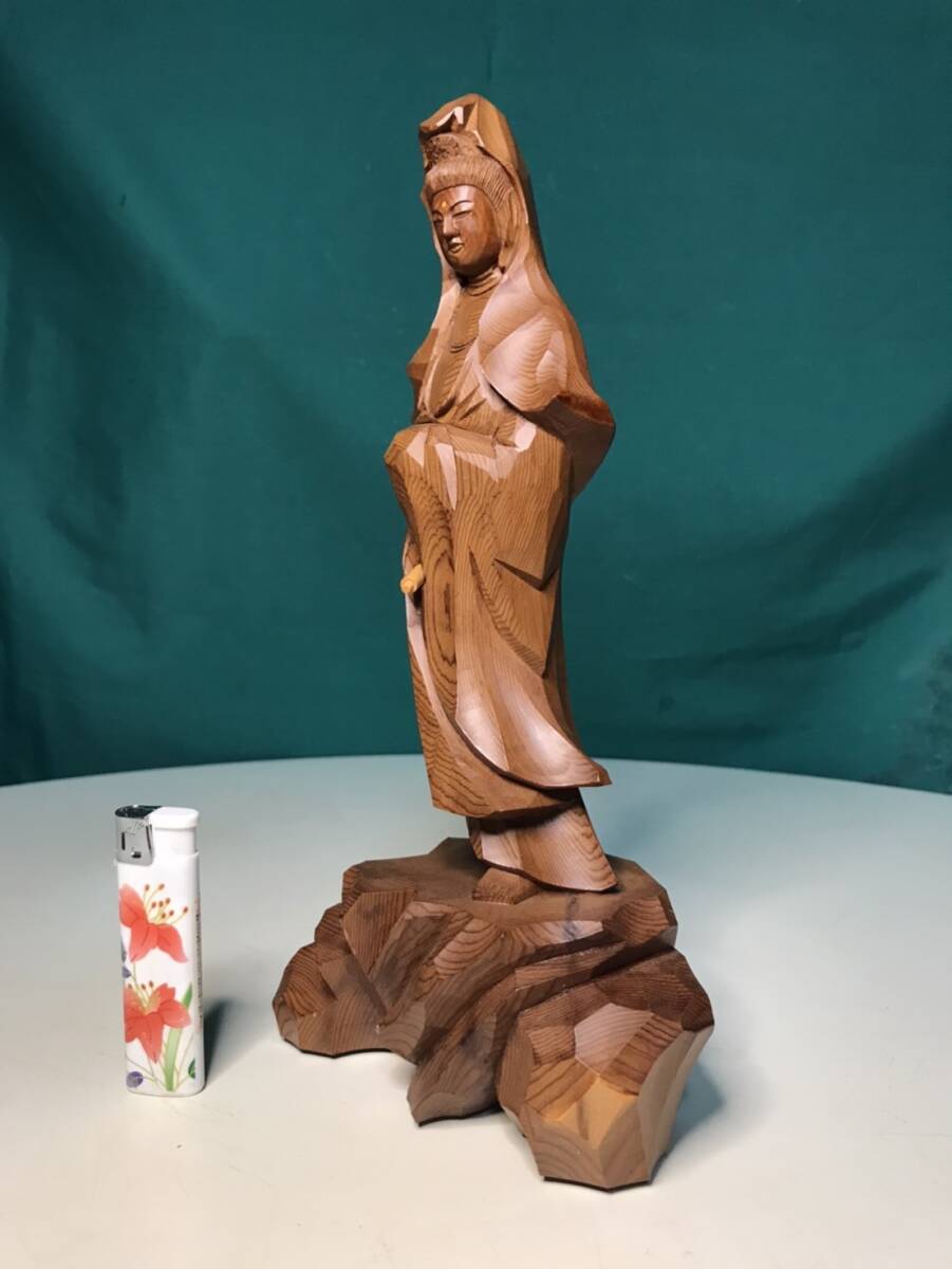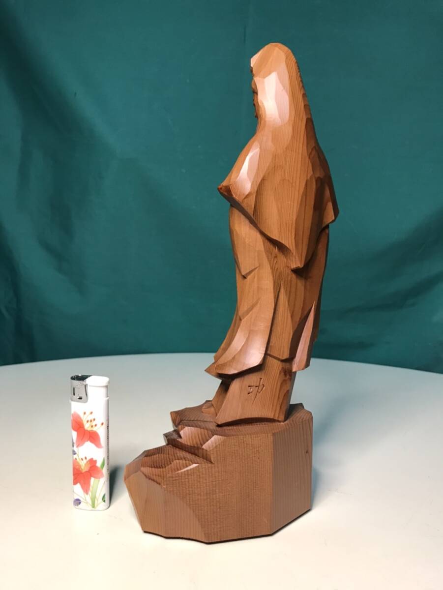 仏像彫刻観音の一位アララギ材の木彫です w13cmxd8cmxh27.5cm