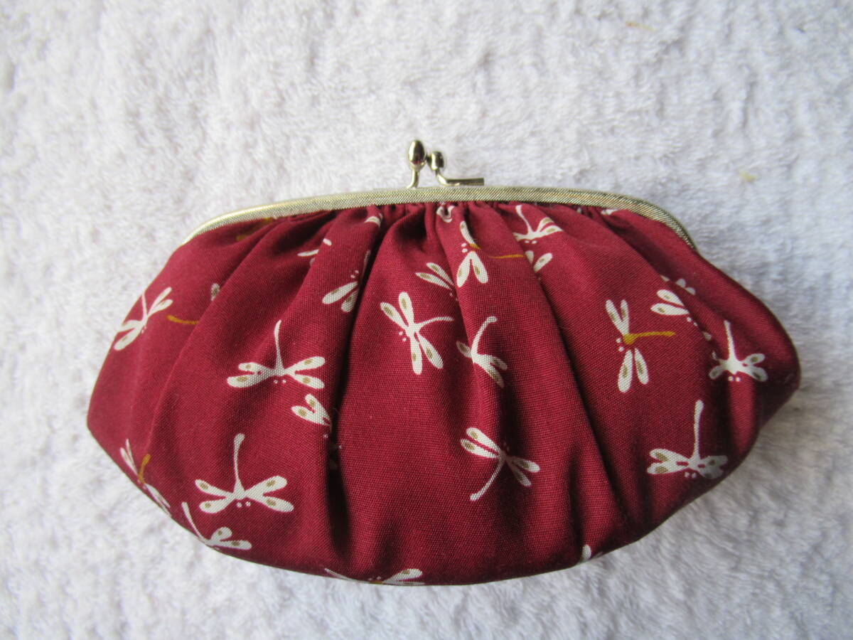手作り 口金式おしぼりケース おでかけに便利!ワイン地トンボ柄
