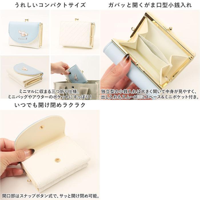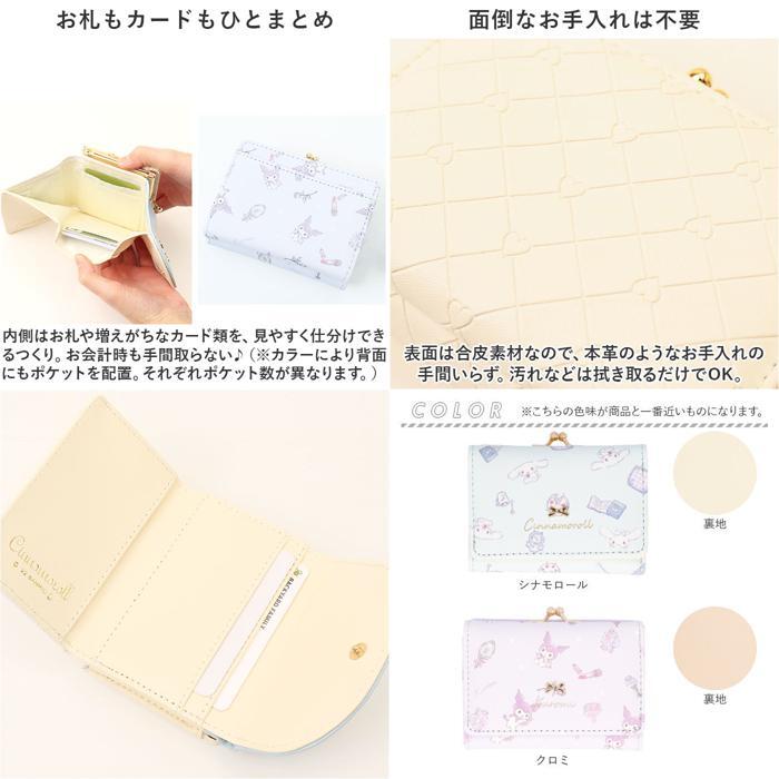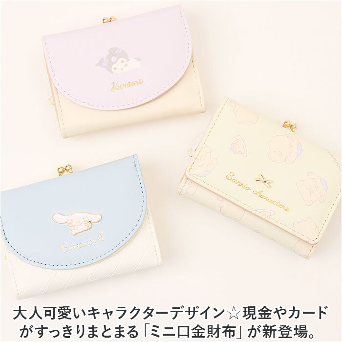 商品説明 | ・・大人可愛いキャラクターデザイン☆現金やカードがすっきりまとまる「ミニ口金財布」が新登場。 ・【人気キャラクターが大集合♪】 ・それぞれのキャラクターに合わせたカラーで仕上げ、フラップには立体的なモチーフやプリント絵柄をプラス。 ・【うれしいコンパクトサイズ】 ・ミニマルに収まる三つ折り仕様。ミニバッグやアウターのポケットにすっぽり! ・【ガバッと開くがま口型小銭入れ】 ・独立型の小銭入れは大きく開いて中身が見やすく、出し入れもスムーズ◎2スペース&ミニポケット付き。 ・【いつでも開け閉めラクラク】 ・開口部はスナップボタン式で、サッと開け閉め可能。 ・【お札もカードもひとまとめ】 ・内側はお札や増えがちなカード類を、見やすく仕分けできるつくり。お会計時も手間取らない♪(※カラーにより背面にもポケットを配置。それぞれポケット数が異なります。) ・【面倒なお手入れは不要】 ・表面は合皮素材なので、本革のようなお手入れの手間いらず。汚れなどは拭き取るだけでOK。 ・【ポケット仕様】 ・《SR1-2シリーズ》 ・外側:小銭入れ(がま口)×1(内側にミニポケット×1) ・内側:お札入れ×1、カードポケット×8 ・背面:カードポケット×1 ・《SR2-2シリーズ》 ・外側:小銭入れ(がま口)×1(内側にミニポケット×1) ・内側:お札入れ×1、カードポケット×8 ・《その他》 ・外側:小銭入れ(がま口)×1(内側にミニポケット×1) ・内側:お札入れ×1、カードポケット×7 |