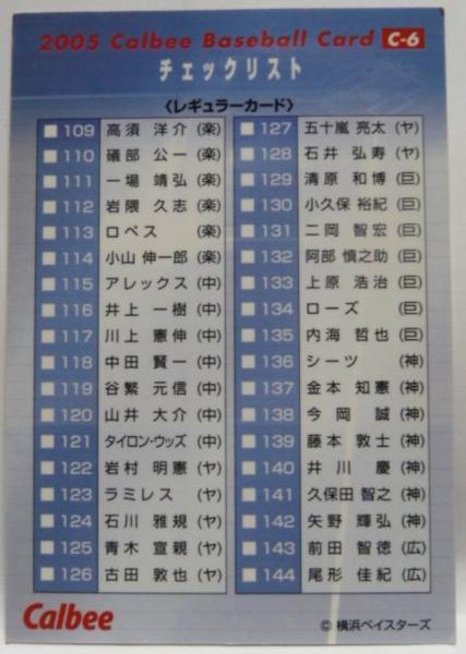 カルビープロ野球カード2005年 C-6【チェックリスト 109-144】平成17年チップスおまけ食玩トレーディングカード【中古】送料込