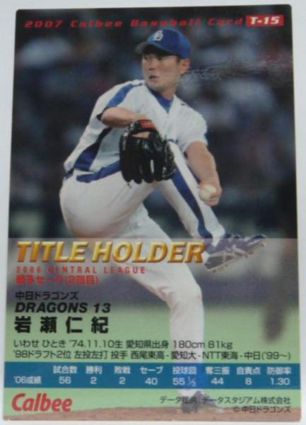 カルビープロ野球カード2007年 TITLE HOLDER T-15【岩瀬 仁紀(中日ドラゴンズ)】平成19年チップスおまけ食玩タイトルホルダー【中古】