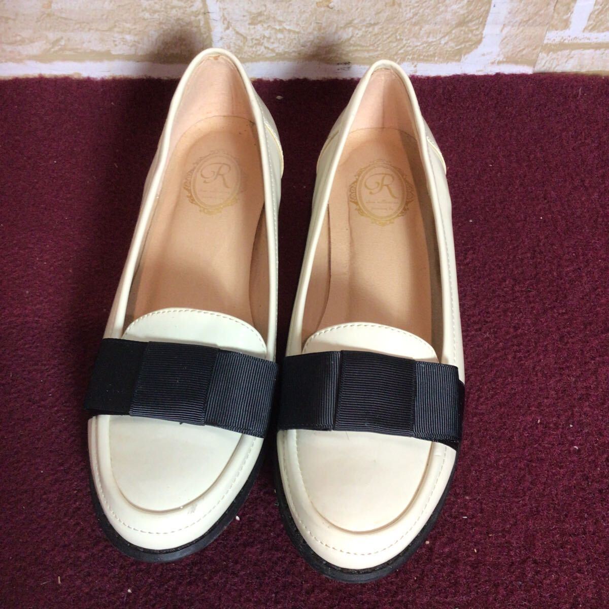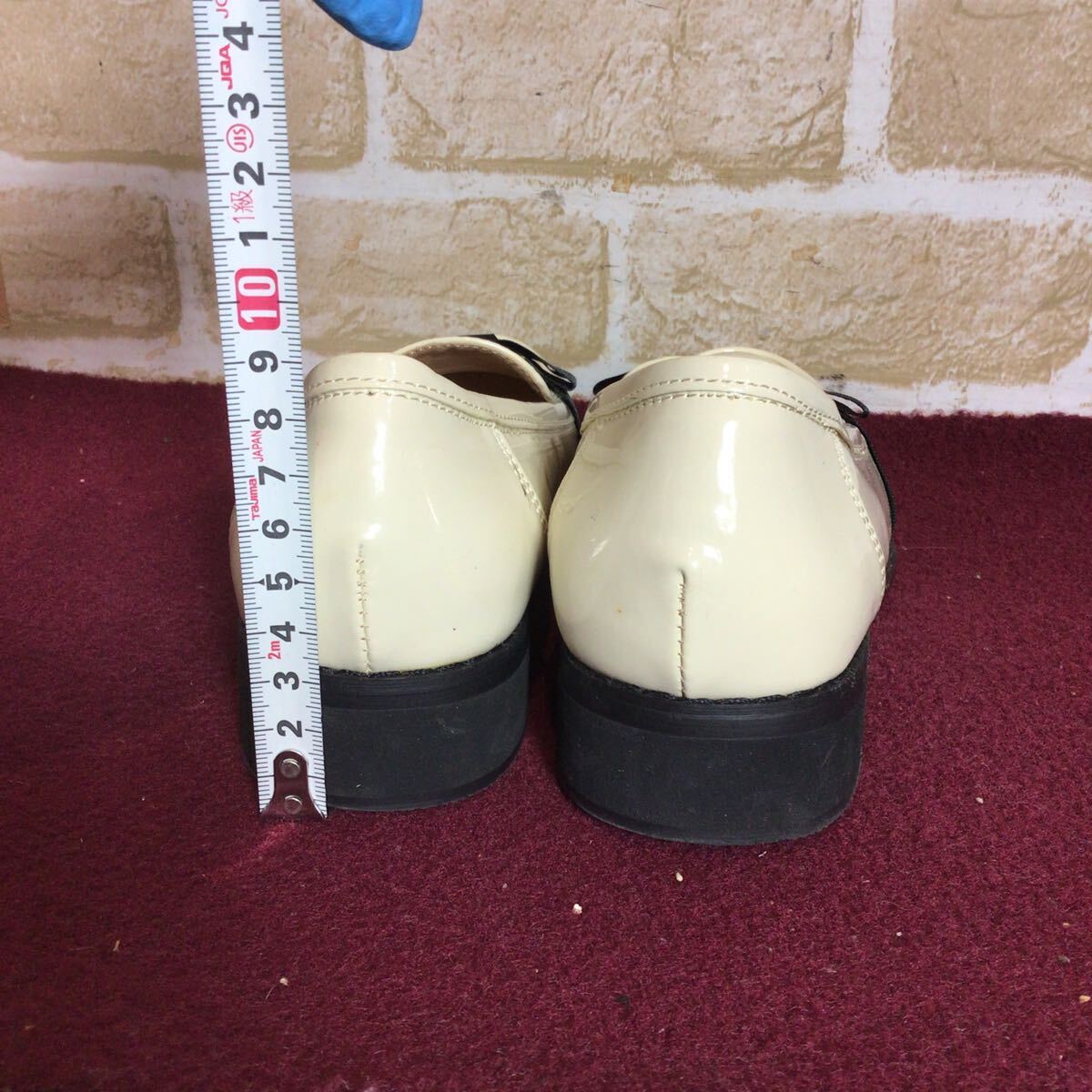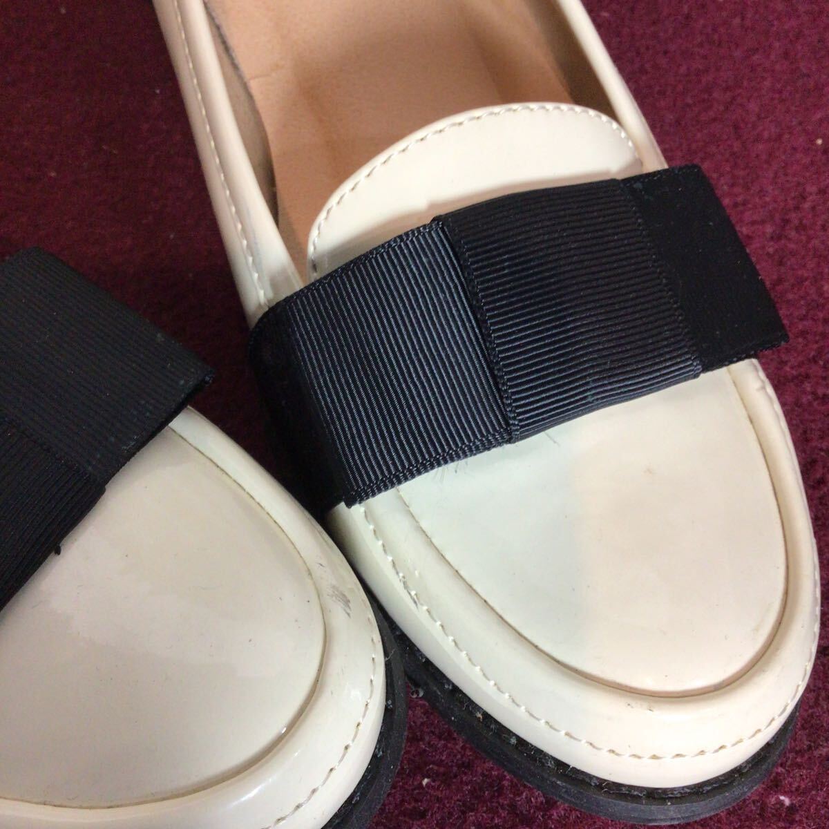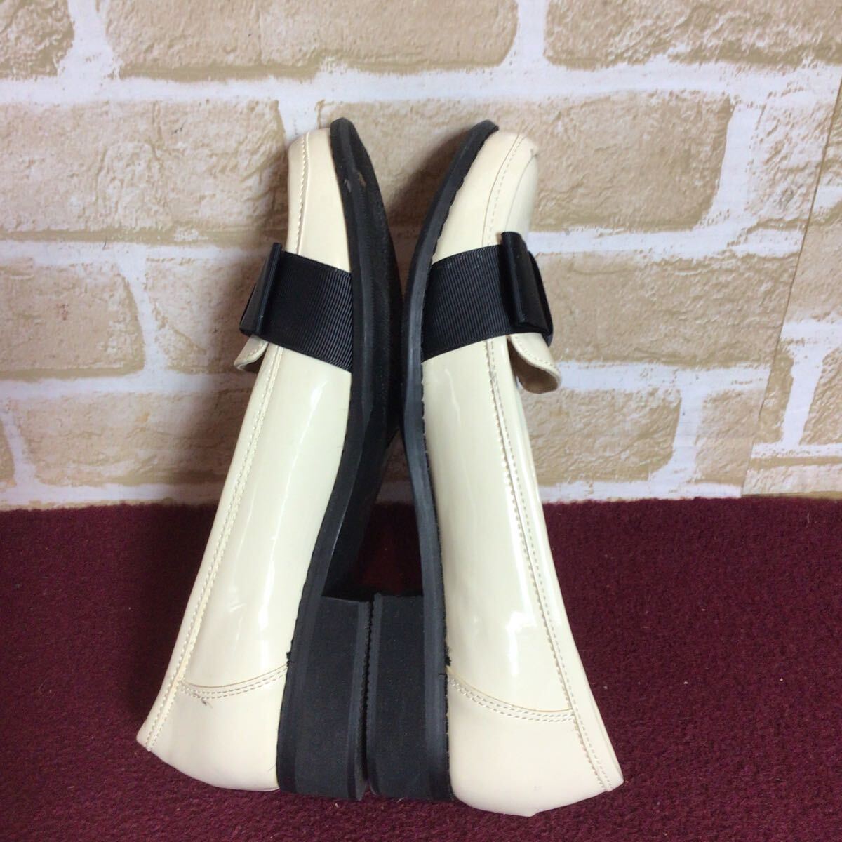 【売り切り!送料無料!】A-356 R!パンプス!M 23.0cm位!リボン!クリーム!エナメルパンプス!おしゃれ!ローヒール!かわいい!中古!