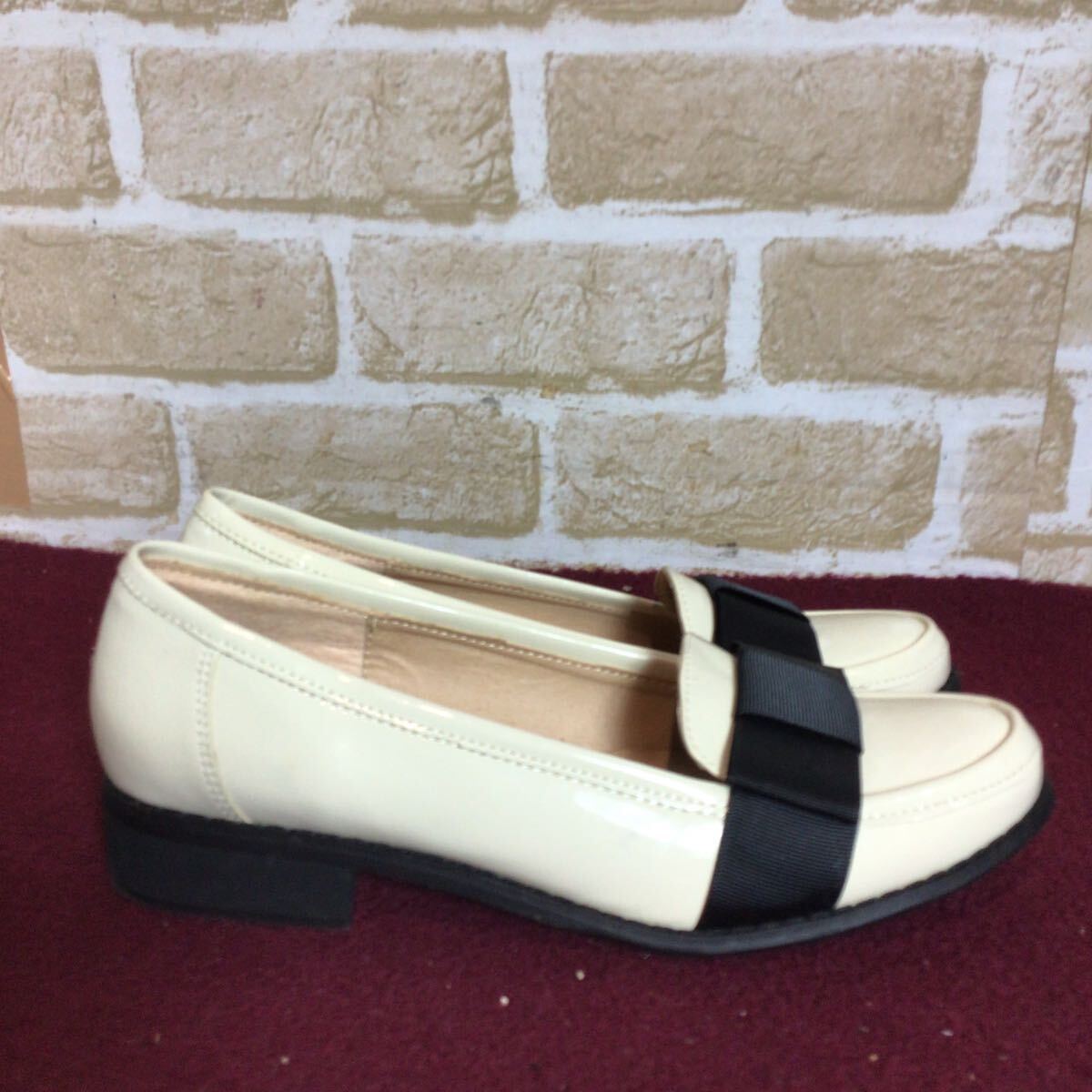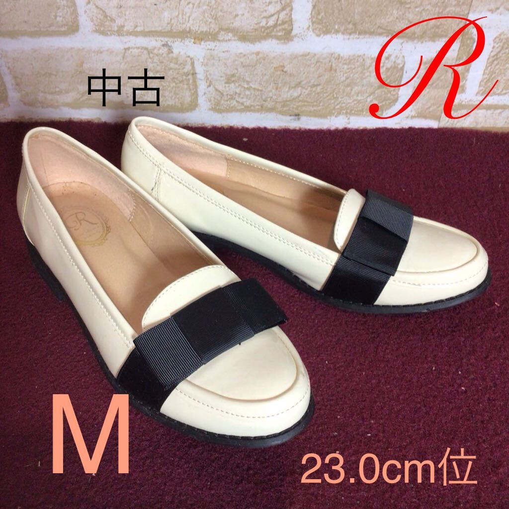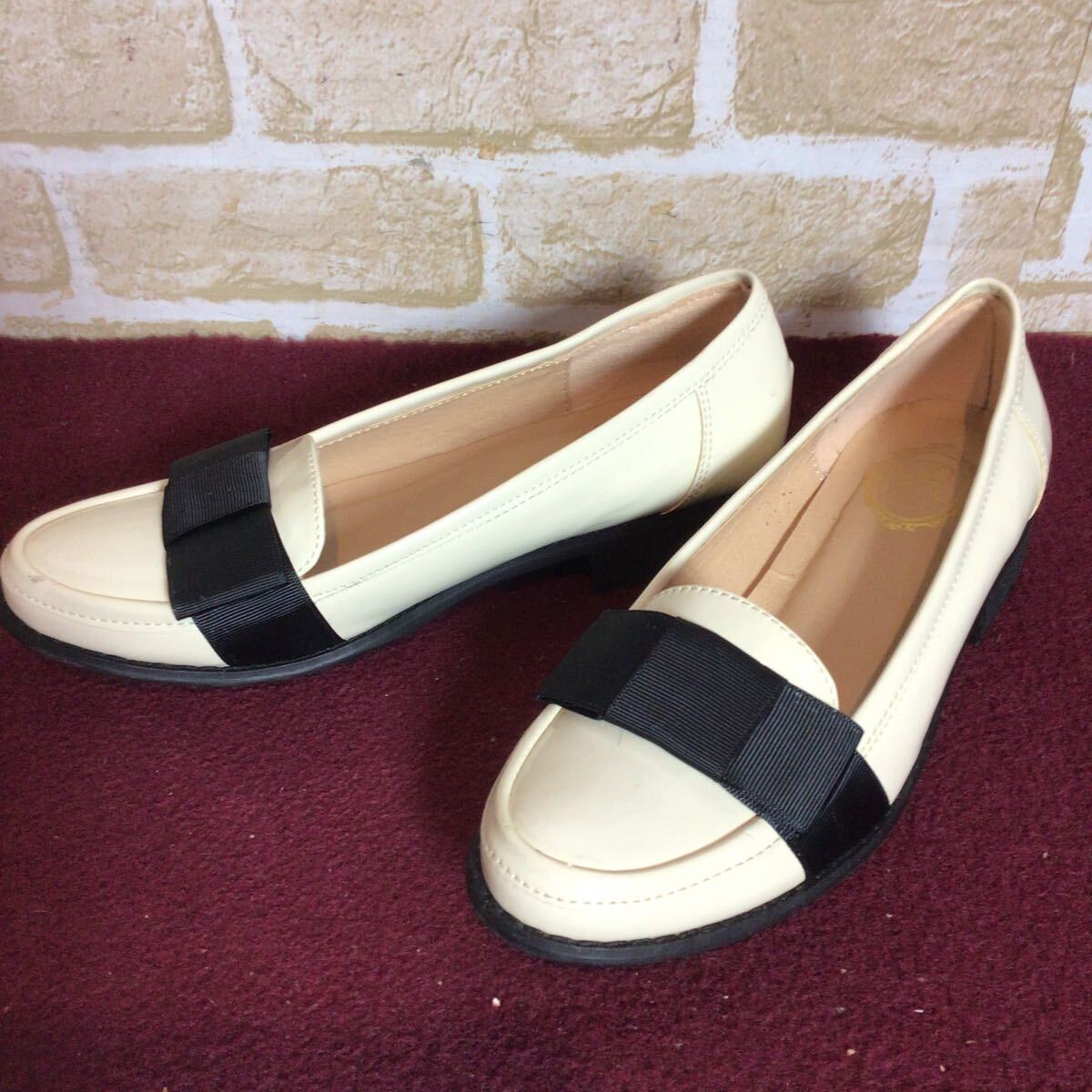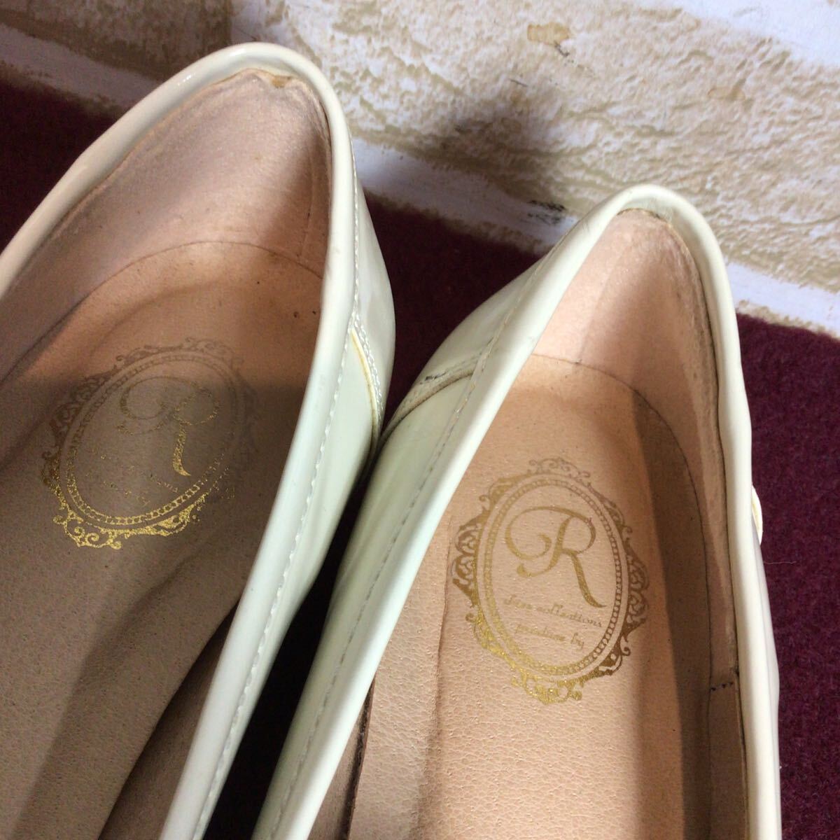 【売り切り!送料無料!】A-356 R!パンプス!M 23.0cm位!リボン!クリーム!エナメルパンプス!おしゃれ!ローヒール!かわいい!中古!