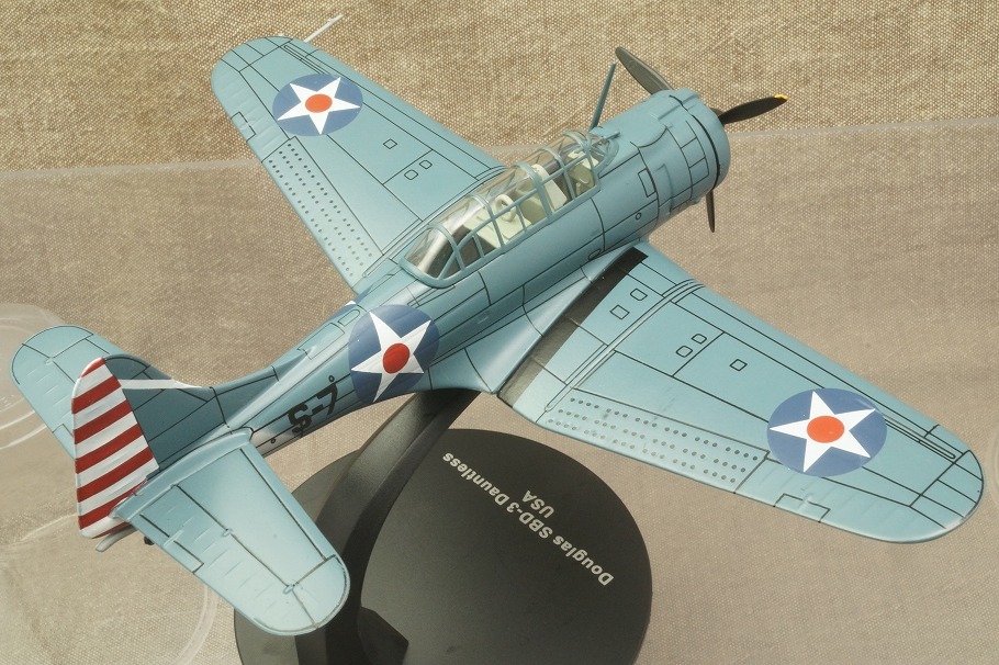 | ★ALTAYA ダグラス SBD-3 ドーントレス 1/72です。 ダグラス社が開発したアメリカ海軍の艦上偵察爆撃機。 爆撃機や偵察機として第二次世界大戦の全期間で活躍した。 メーカー:Altaya ズッシリ重く、迫力満点です。 ディスプレイスタンドついてます。 ※完成品ですが、一部パーツは取り付ける必要があります。取付パーツは取れやすくなっています。 | |