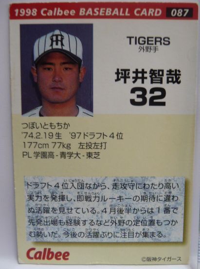 カルビープロ野球カード98年#087【坪井 智哉(阪神タイガーズ)T】平成10年1998年チップスおまけ食玩トレーディングカード【中古】送料込
