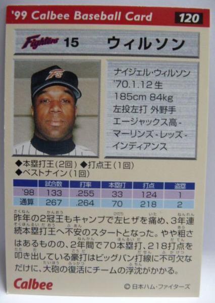カルビープロ野球カード金サイン入99年#120【ウィルソン(日本ハム ファイターズ)】平成11年1999年チップスおまけ食玩【中古】送料込