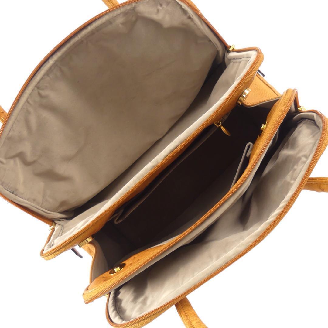 即決★N.B.★オールレザーハンドバッグ オーストリッチ 茶 キャメル 本革 手提げバッグ 本皮 旅行 カバン 鞄