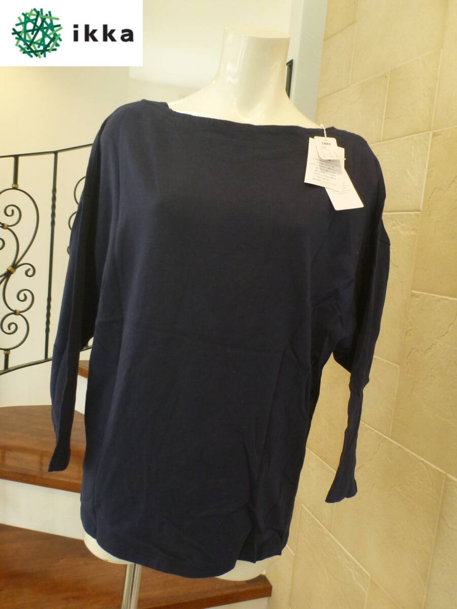 新品 ikka イッカ★紺 ネイビー 綿100 2way 前後可能 カットソー L