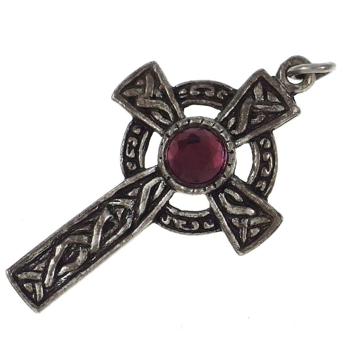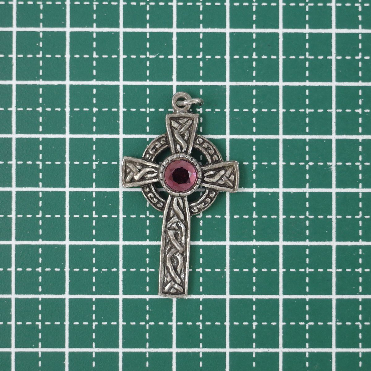 UK1648◆ クロス ケルト十字 パープル系ラインストーン 色石 イギリス 英国 ◆ ヴィンテージペンダントトップ ネックレスに