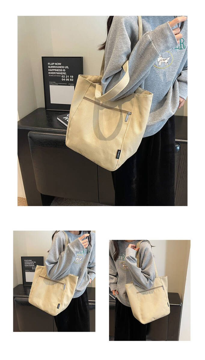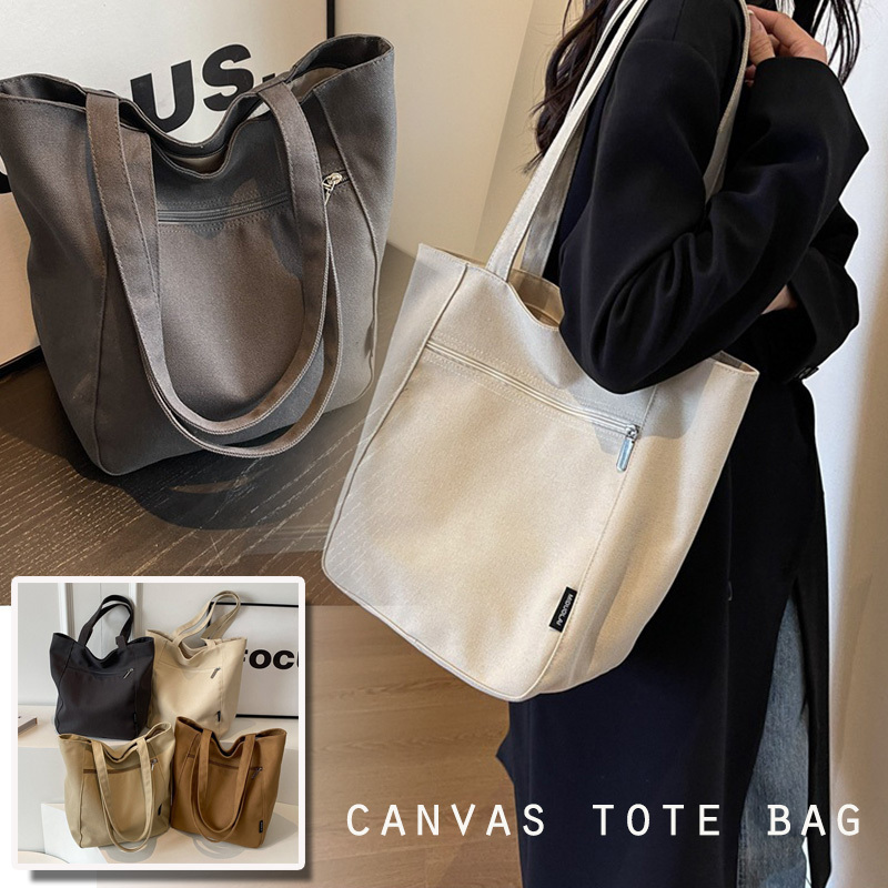 大きくて使いやすいショルダーバッグ、耐久性の高いキャンパス生地で丈夫です。内側にはポケットがあり、小物などを分けて収納できます。