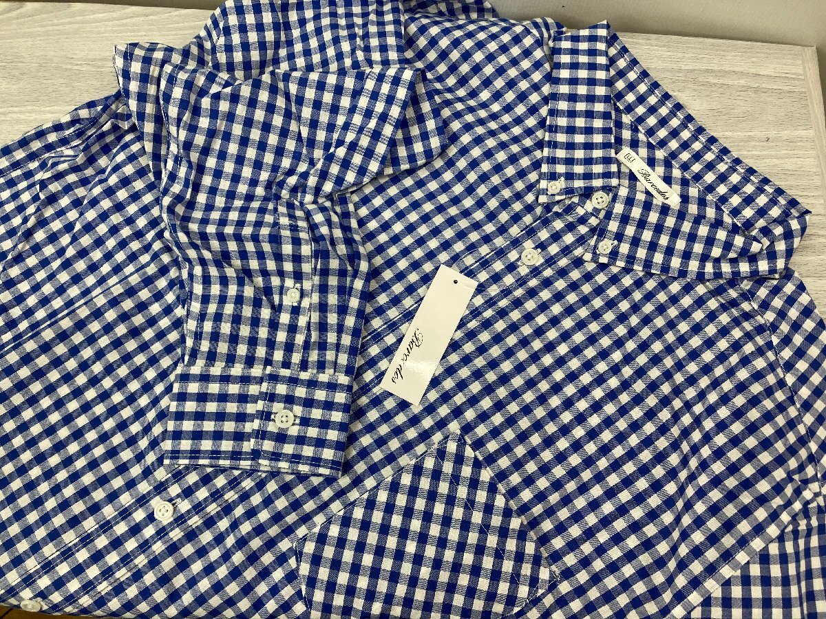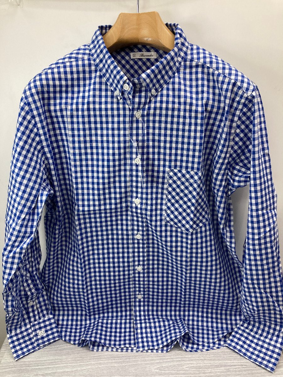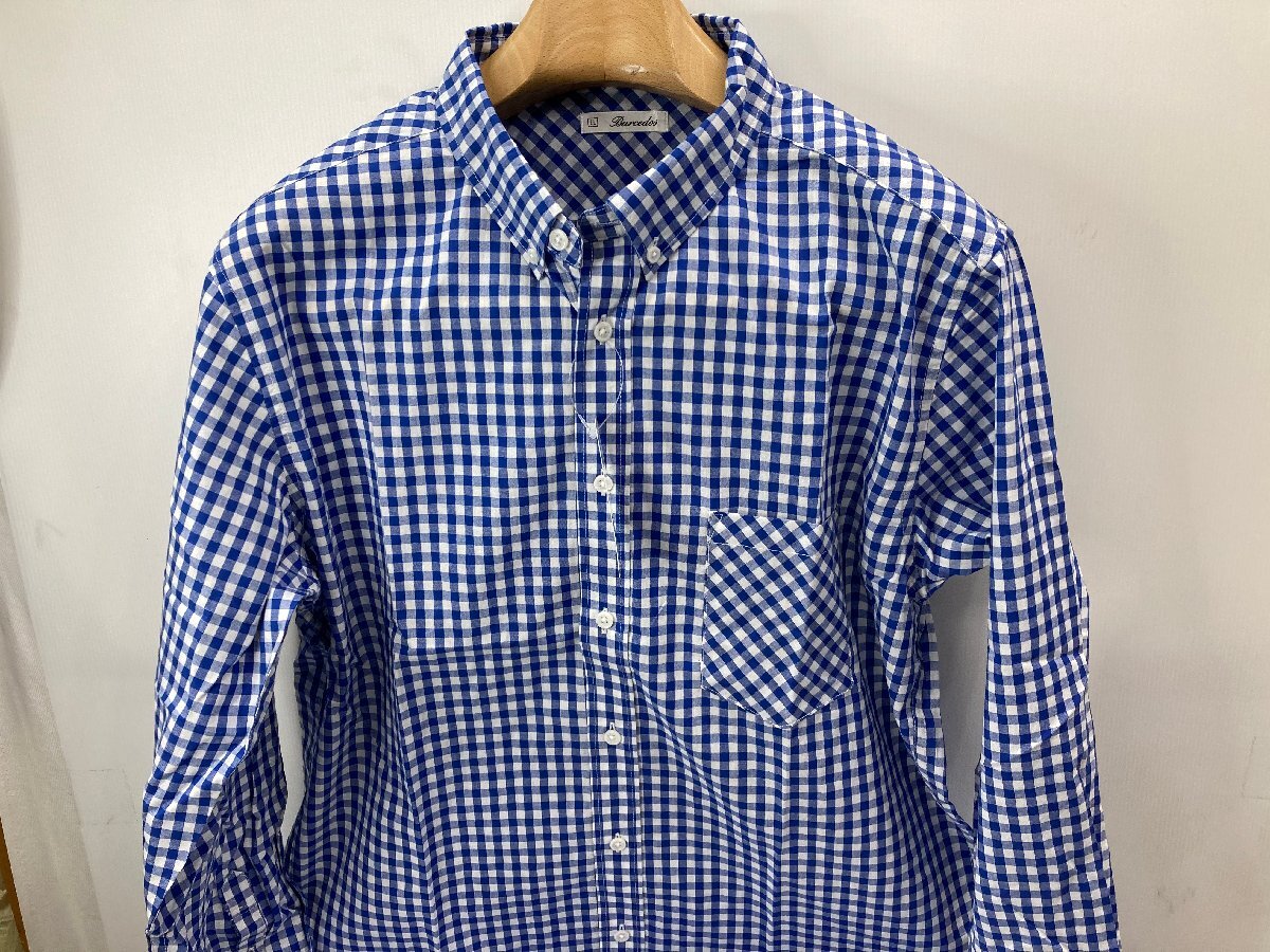 長袖シャツ ボタンダウン ギンガムチェック 高密平織綿布 LL 青白 barcedos★未使用格安!