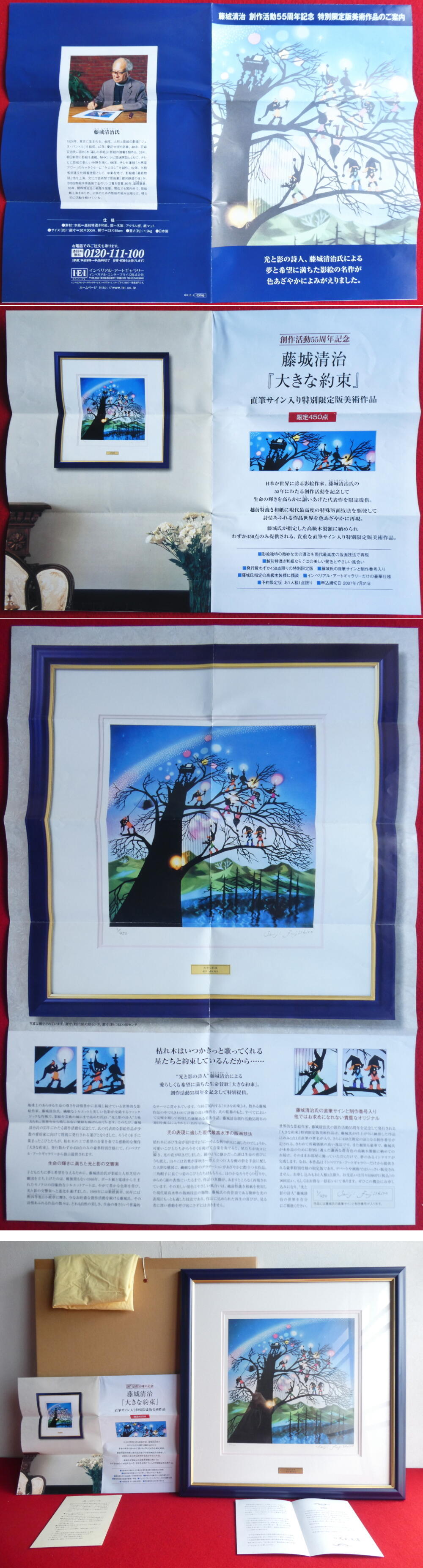 | 商品 | 藤城清治 創作活動55周年記念 【 大きな約束 】 直筆サイン入り 特別限定版美術作品 レフグラフファイン版画 版画サイズ : 約 300mm×300mm 額サイズ : 約 530mm×550mm×23mm |