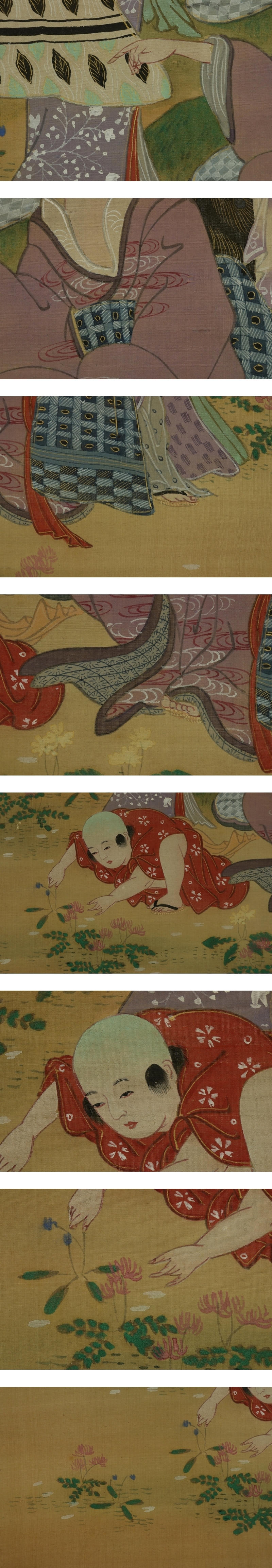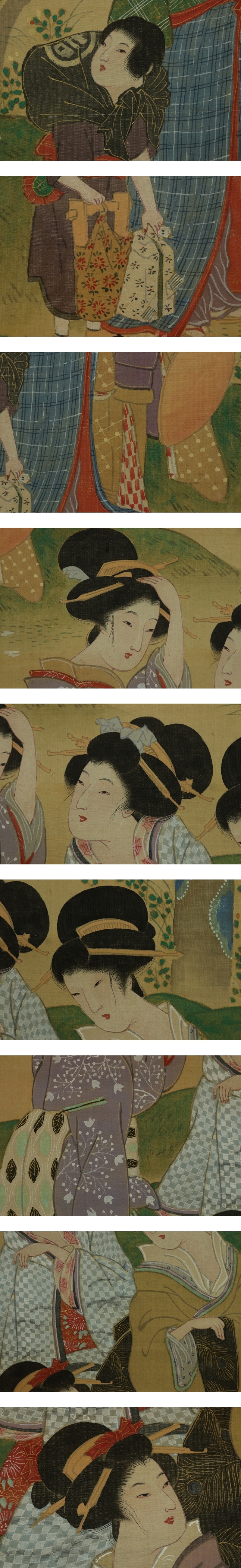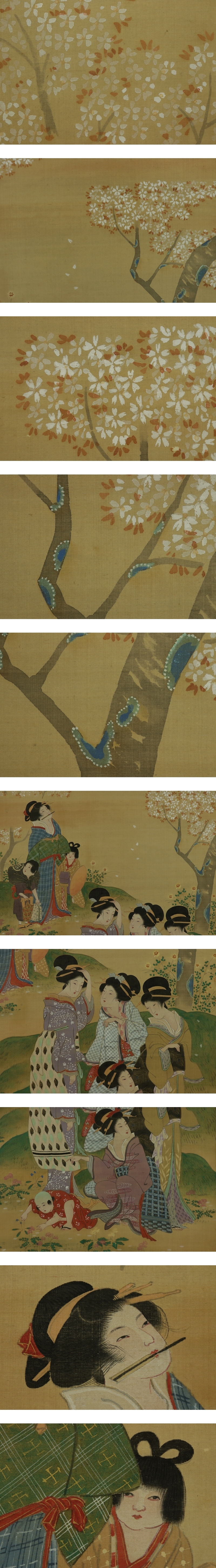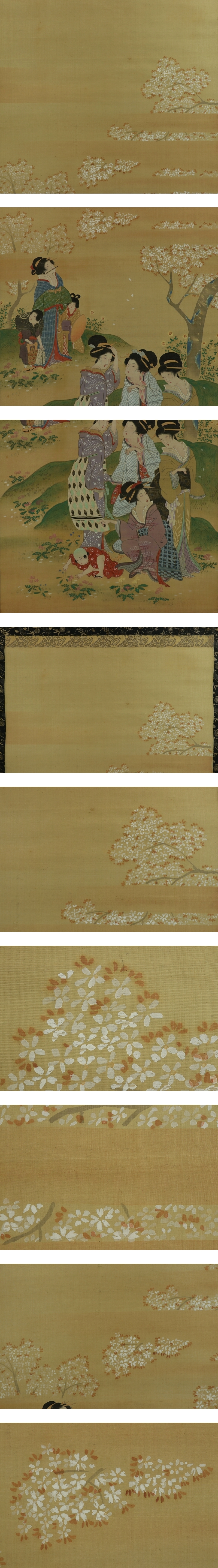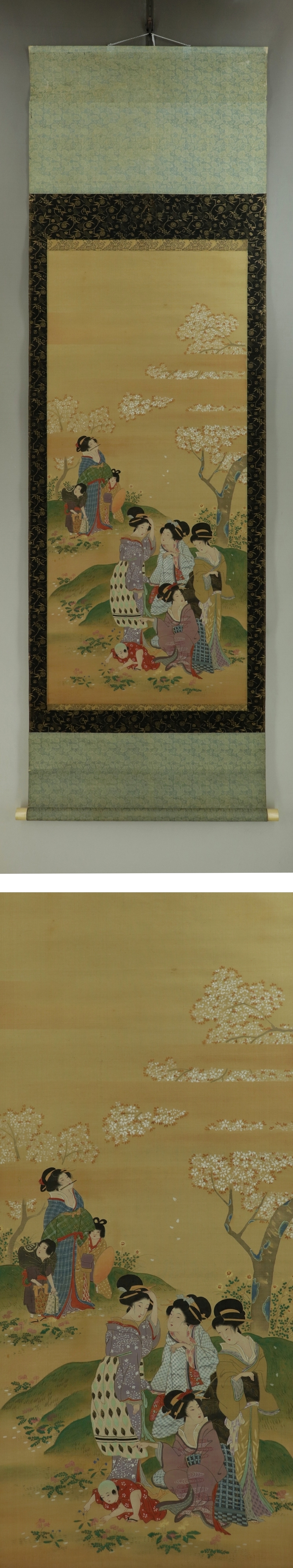 | №2402067 名品【肉筆】伝・宮川長春【桜見物図】◆絹本◆合箱◆掛軸 | |